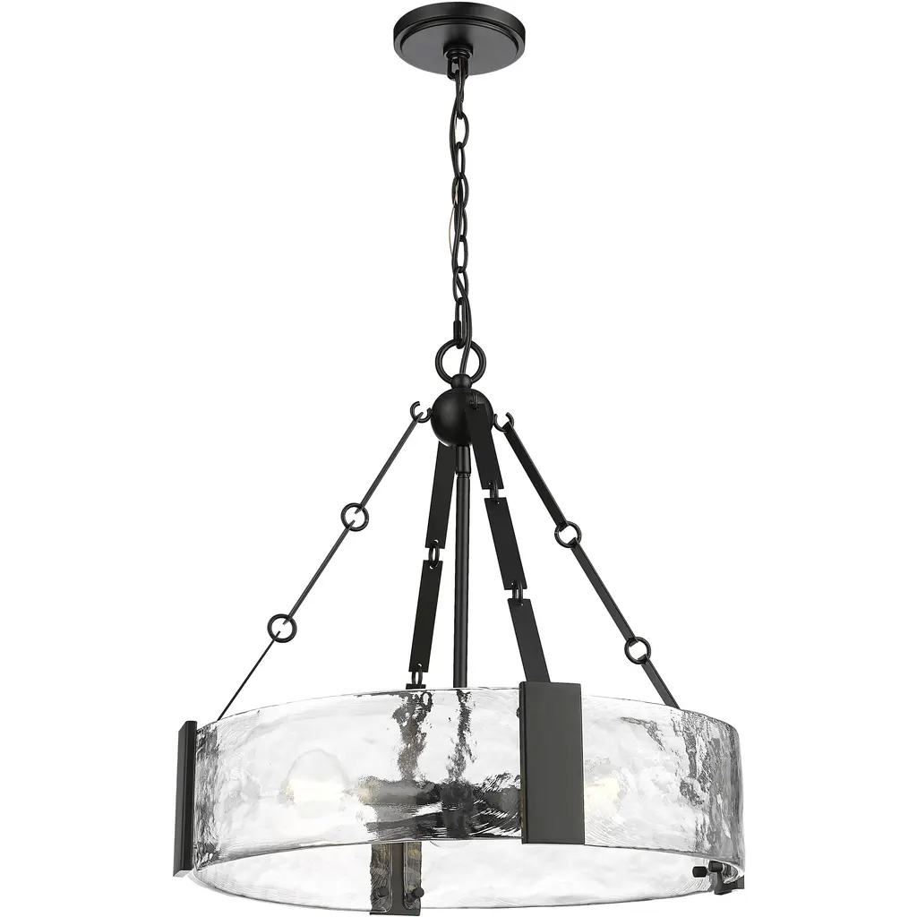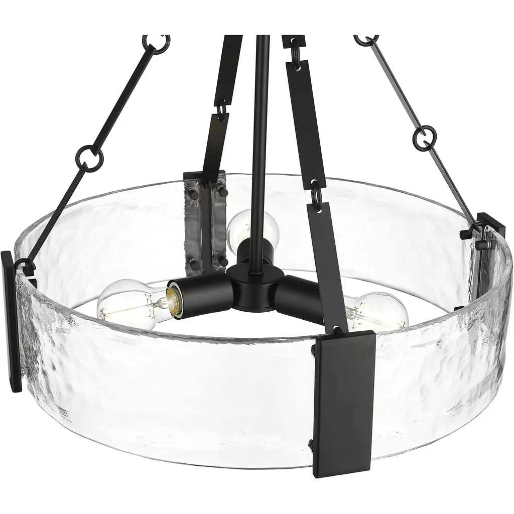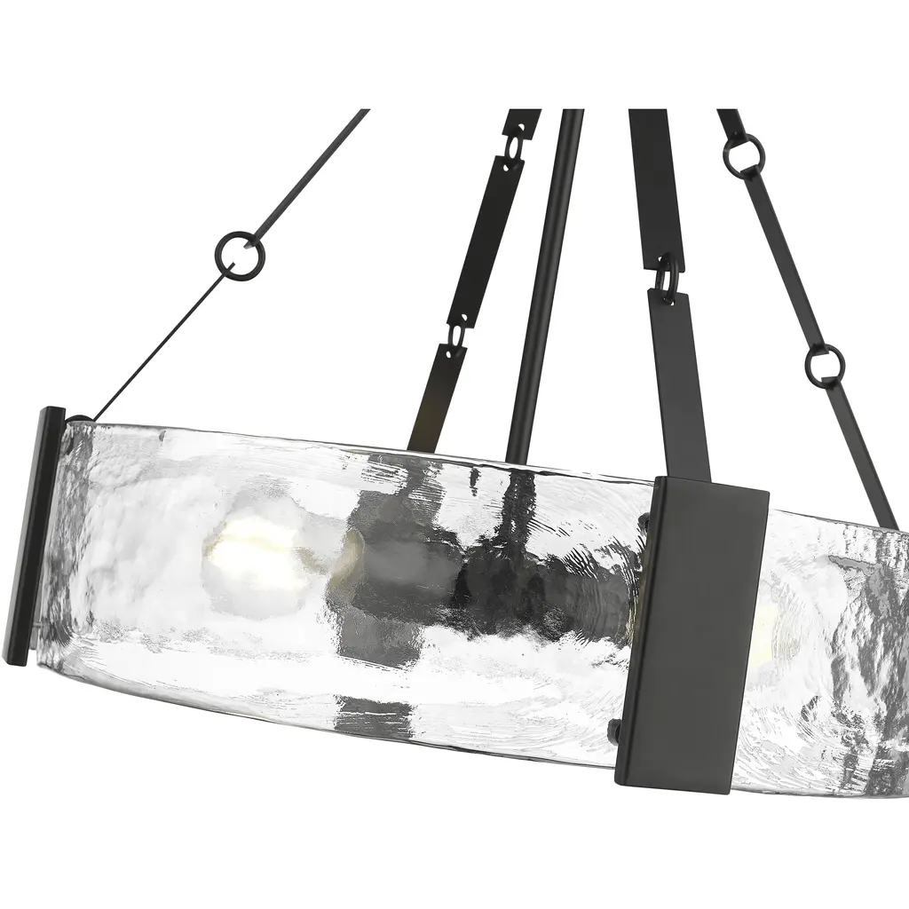 Clear hammered glass panels are the sparking stars of the Rezi Family. Featuring modern hardware supporting an understated minimalist framework, these fixtures are finished in matte black and are available as 1-light sconce and 3- or 4-light chandeliers. The stunning textured glass creates a glistening lighting effect for subtle and diffused illumination. Meticulously crafted, these fixtures are naturally inspired works of art that will enhance any interior space from entryway to dining room.