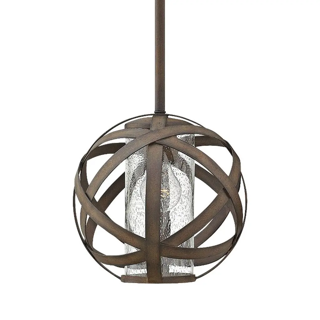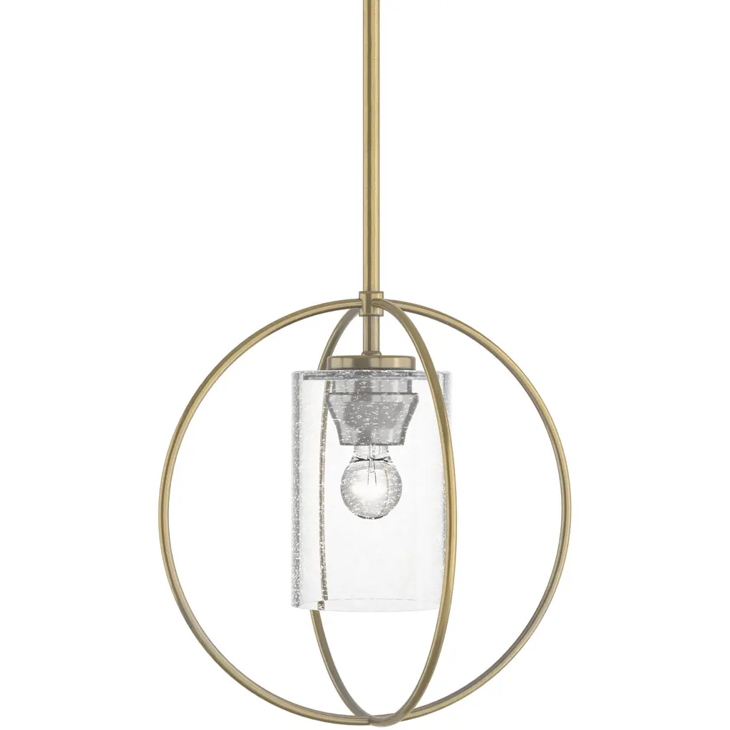 Two hoops of steel orbit the glass of the Rhythm to create a contemporary and transitional design that works in harmony with a variety of spaces. Choose a seeded glass paired with an Edison bulb for a more industrial look.
