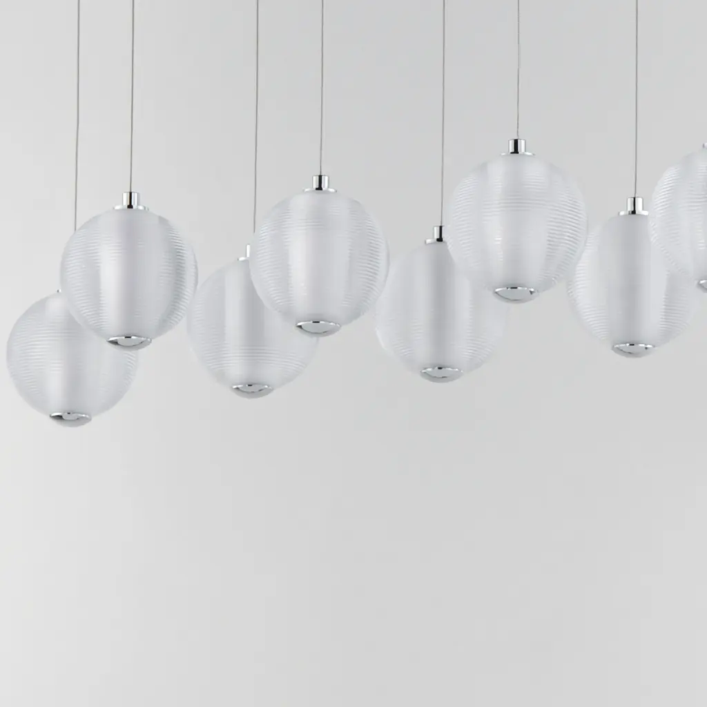 Ablaze with omnidirectional LED light radiating from the center of perfectly ribbed spheres, the lustrous glow within accentuates the repeating pattern on the glass' exterior. With minimal hardware visible outside the glass, select from Polished Chrome or Gold to match your interior's decor.