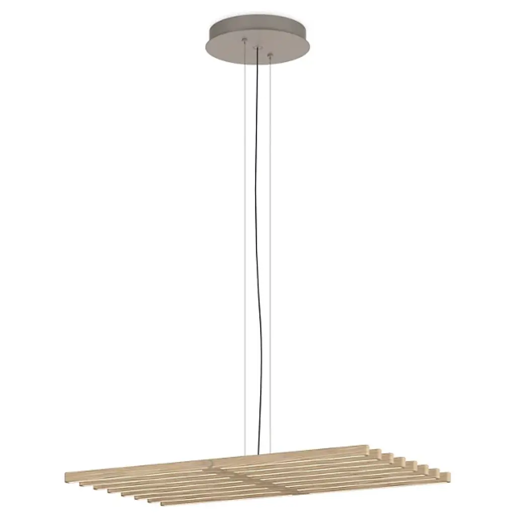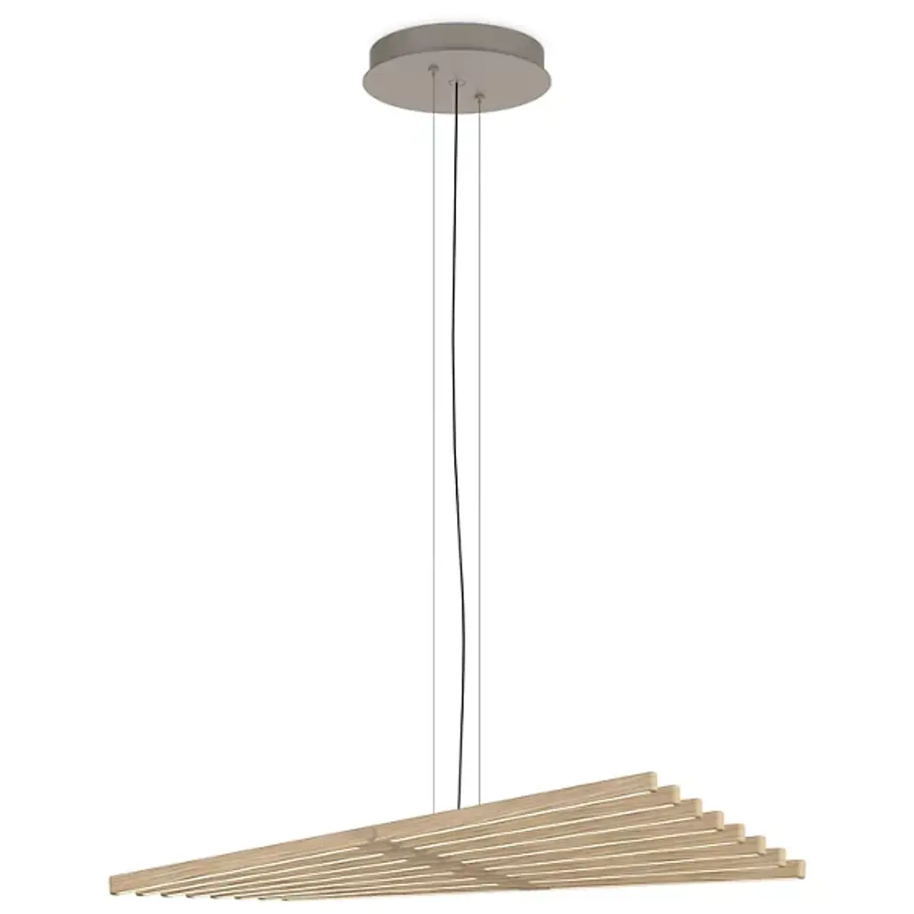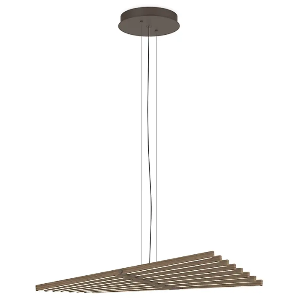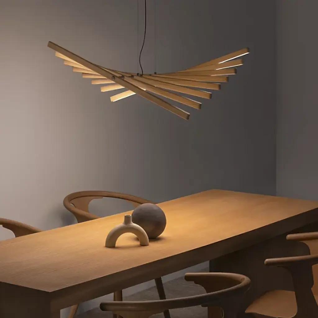 The Rhythm Wood LED Pendant from Vibia adds a striking, sculptural appeal to inside ceilings. A vibrant design from Arik Levy, it’s made in Spain and leverages its adaptability, sending out wood beam housings along a central axis that are able to rotate at will. LED lamping is set inside the narrow end of each wood housing, pouring out a customizable ambiance around the adjustable fixture. The fixture can take on the characteristics of a smooth waveform or a chaotic abstract sculpture at will, while the natural woodgrain makes each fixture unique.