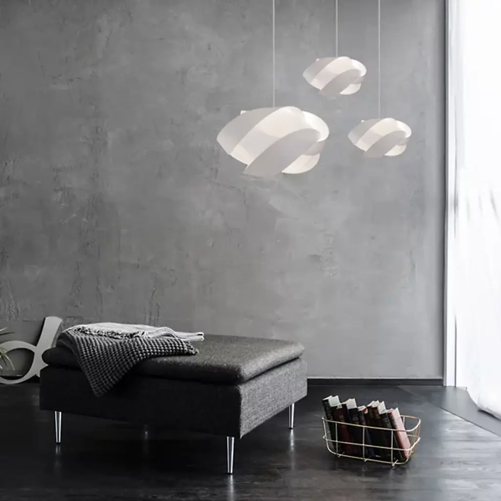 Illuminate your space with the Ribbon Mini Pendant from UMAGE. It was designed by Lorenzo Radaelli. This pendant captures the essence of celebration with its festive, contemporary aesthetic. The polypropylene frame, inspired by the twists and turns of a ribbon, adds an artistic touch to your décor. Powered by an LED, it brings both light and style to your space. Ribbon is secured by a ceiling canopy, making it suitable for various indoor spaces.