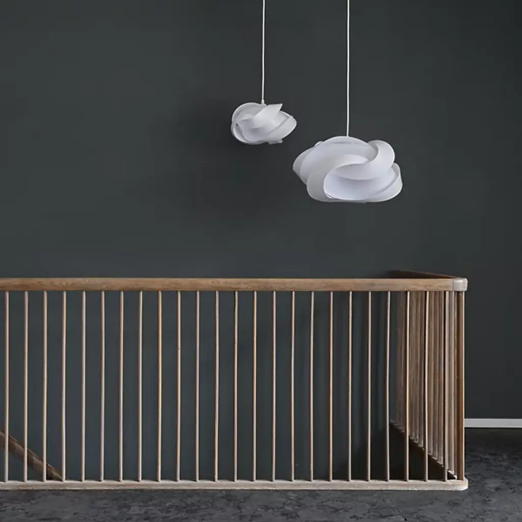 Illuminate your space with the Ribbon Mini Pendant from UMAGE. It was designed by Lorenzo Radaelli. This pendant captures the essence of celebration with its festive, contemporary aesthetic. The polypropylene frame, inspired by the twists and turns of a ribbon, adds an artistic touch to your décor. Powered by an LED, it brings both light and style to your space. Ribbon is secured by a ceiling canopy, making it suitable for various indoor spaces.