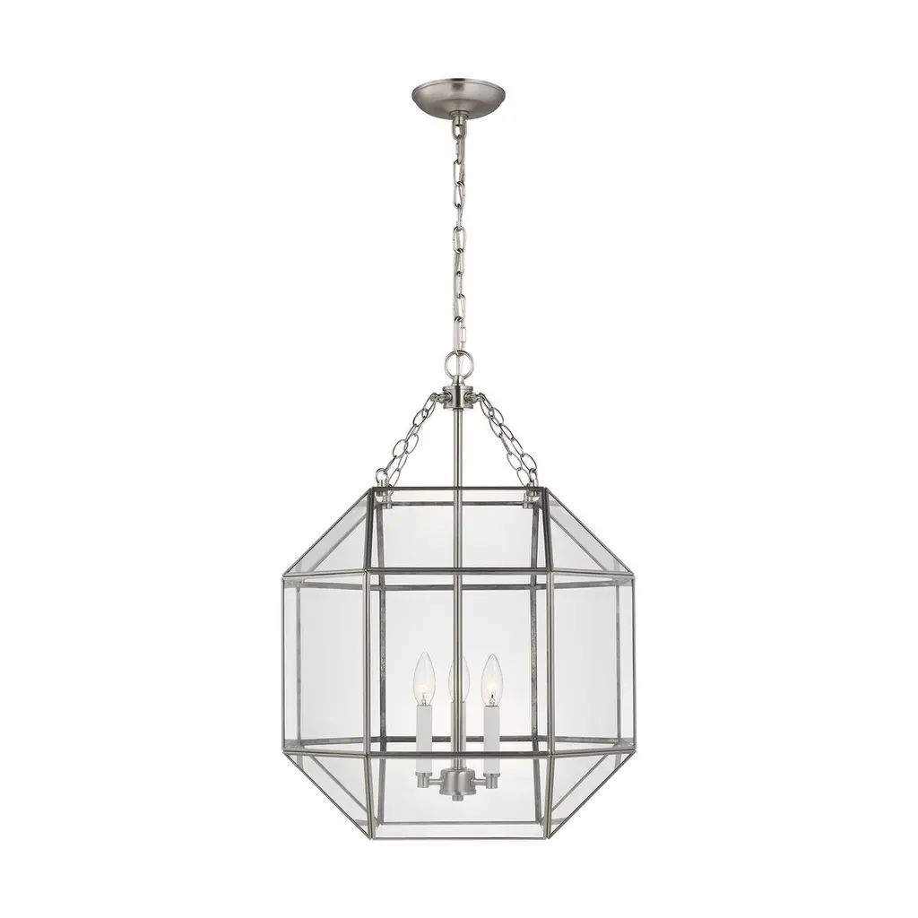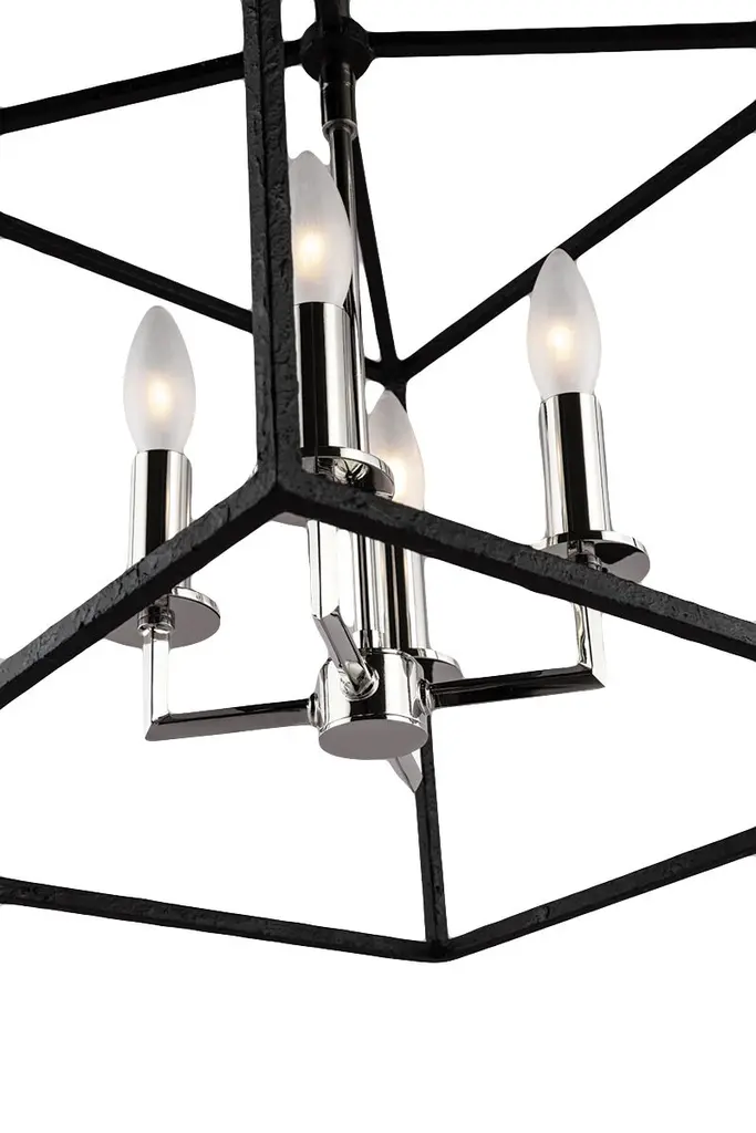 Old-world charm meets modern style in this stylish four-sided black lantern. Suspended by a diamond-link chain, the open framework casts an even spread of light over large areas. The artisanal feel is accentuated by the choice of finish; either the inviting warmth of Aged Brass or the sleekness of Polished Nickel. Part of our Becki Owens collection.