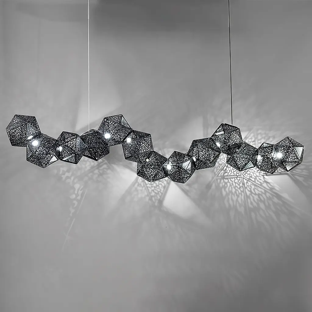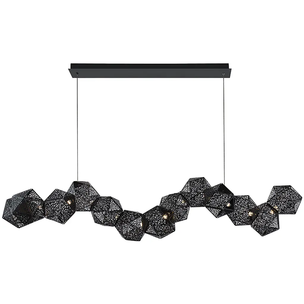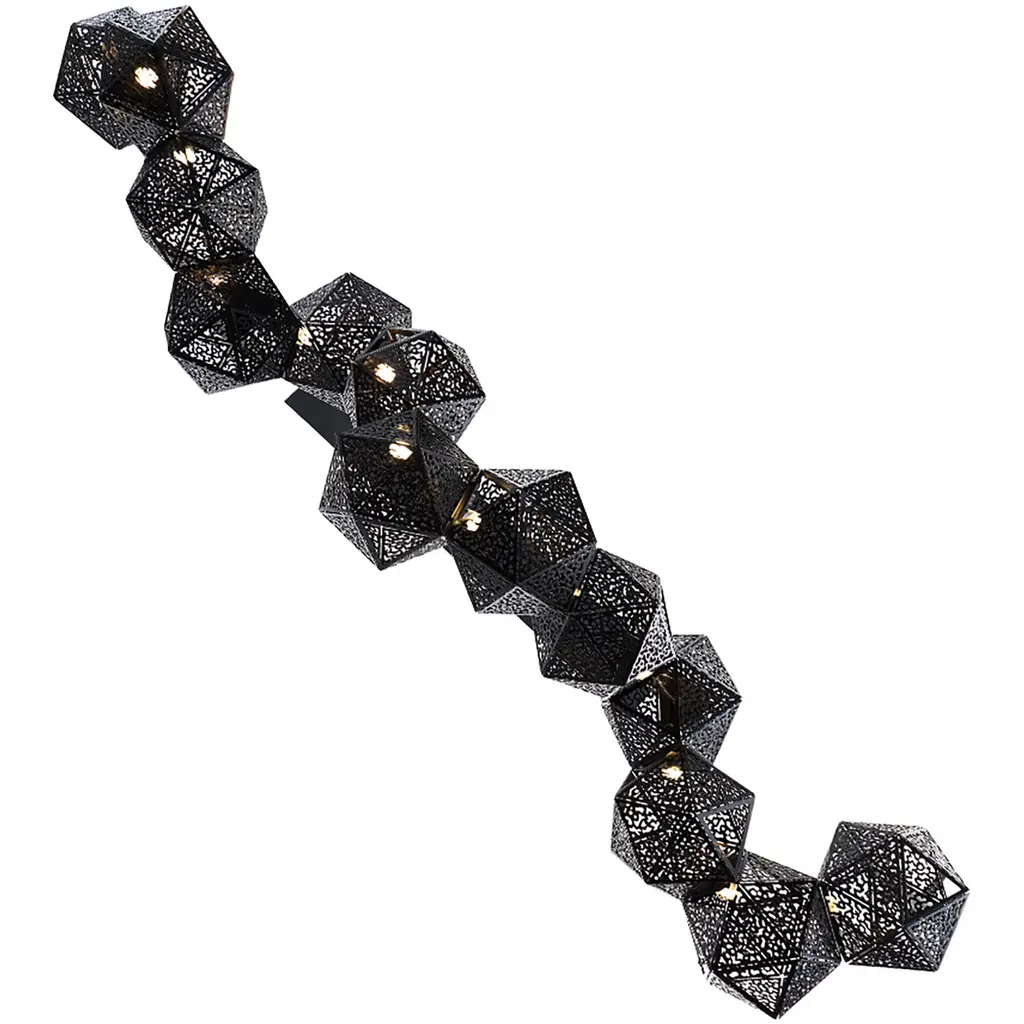 Riddle’s intricate pattern and joinery is no joke. Our expert craftsmen use a special wet-etching process to create a textural motif that looks like a mash up of Sol Lewitt and the complex geometric shapes of Islamic architecture. Inside, an acrylic diffuser shields the high- performance LED modules to create a glare-free illumination, which peekaboo's through the etchings and creates stunning patterns on the nearest surface. A true statement piece with a bold black finish.