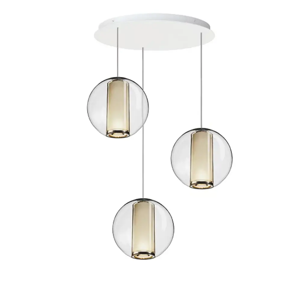 Riflessi is a pendant lamp made of Murano glass. Its wavy blown glass diffuses a soft, fragmented light that evokes the shimmering reflections of the sea in the gentle motion of the Venetian lagoon. Available in multiple versions and customizable with a range of finishes, this lamp illuminates and decorates with both delicacy and character, blending seamlessly into contemporary living spaces.