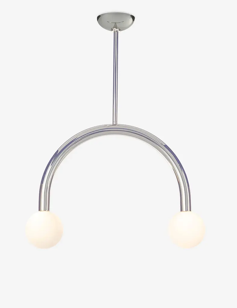 The Rigoberta Duo Curved Pendant from Robin is a stylish, versatile lighting solution that blends glass globes with sleek black iron tubes for a modern yet playful aesthetic. Whether used as a bold statement piece or a subtle accent, this pendant adapts effortlessly to any space. Its flexibility allows for standalone installation or pairing with other pieces from the Rigoberta collection, offering endless opportunities for customization. Perfect for adding character and sophistication, it enhances interiors with its contemporary charm and dynamic design.