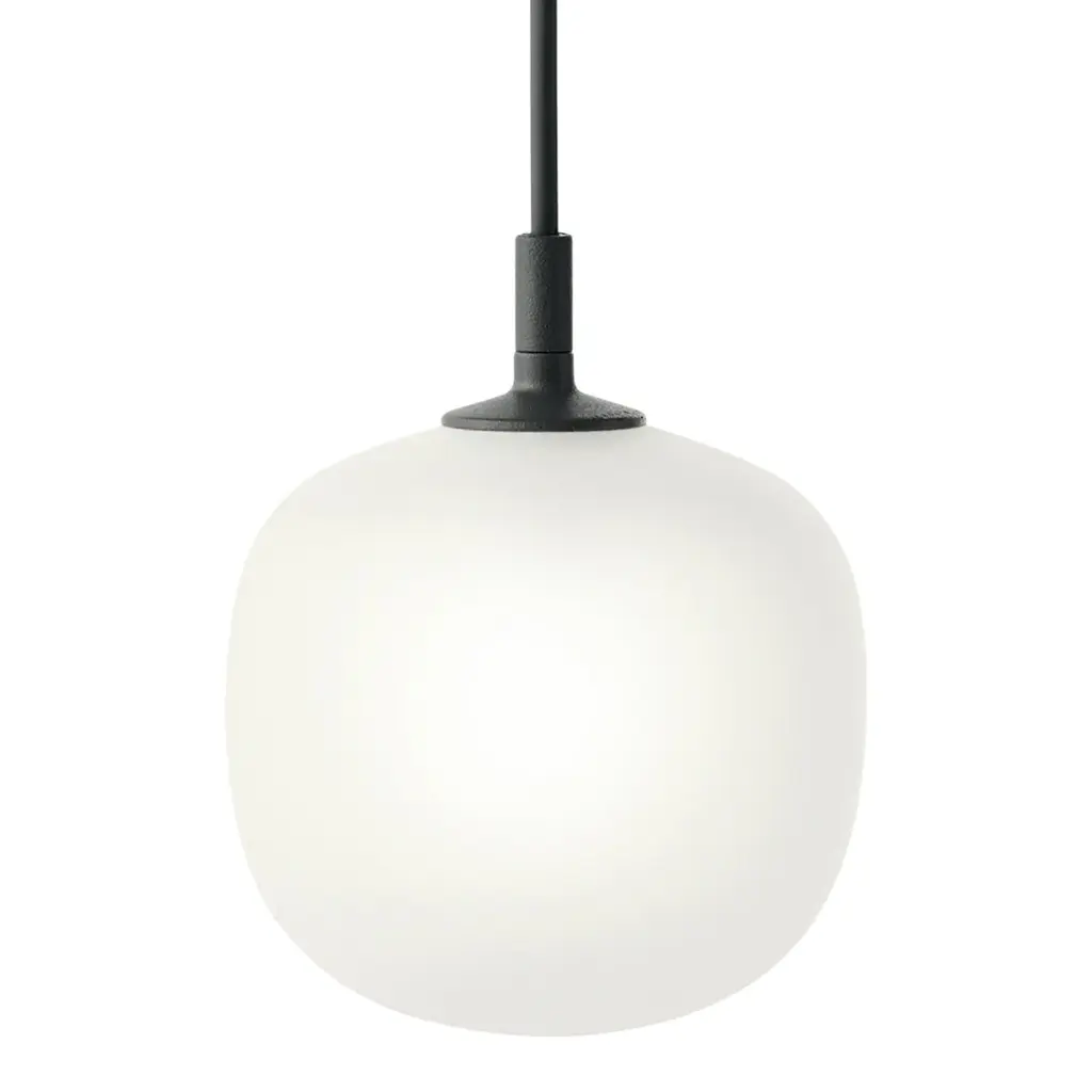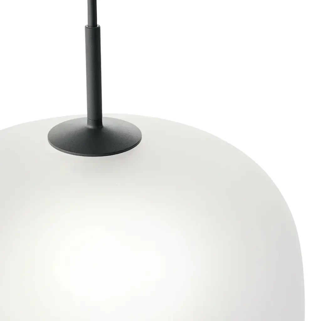 The Rime Pendant Lamp brings an elegant perspective to the glass pendant lamp through its semi-transparent glass that has been sandblasted for a refined expression. The design features a characteristic form, inspired by the shape of acorns, complemented by its powder-coated top-part, pendant tube and cord in a matching color for a subtle touch. The design is available in four colors across four sizes, allowing you to use the design on its own or in linear formations or playful clusters for a modern chandelier.