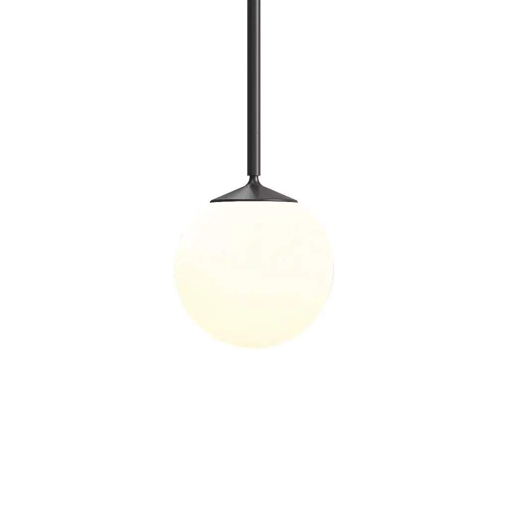 The Rime Pendant Lamp offers an elegant take on the classic glass pendant with its semi-transparent, sandblasted glass, creating a refined, soft glow. Its distinctive acorn-inspired shape is complemented by a powder-coated top, with a matching pendant tube and cord for a harmonious look. Available in a variety of colors and sizes, the design can be used individually or arranged in linear formations or playful clusters to create a modern chandelier, adding a sophisticated touch to any space.