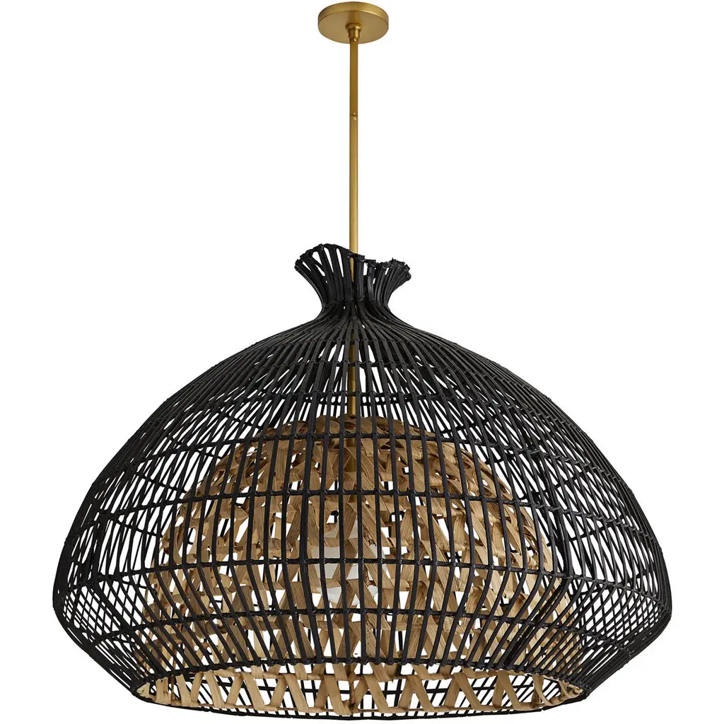 Rimini 1 Light 38 Inch Black And Natural Pendant Ceiling Light