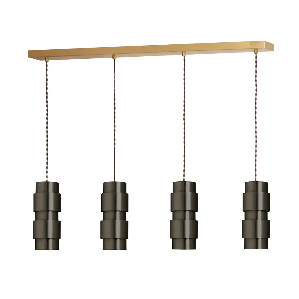 A refined architectural statement, the Ring Cluster Pendant from CTO Lighting creates a mesmerizing play of light and shadow. This beautifully sculptural fixture features a cluster of sleek metal rings, suspended at varying heights from a matching ceiling rose by delicate, silk-braided cables. When lit, the rings create a captivating dance of light and shadow, highlighting their minimalist form. A fusion of architectural design and ambient light, it’s a stunning and elegant centerpiece for any contemporary interior. Highlights: