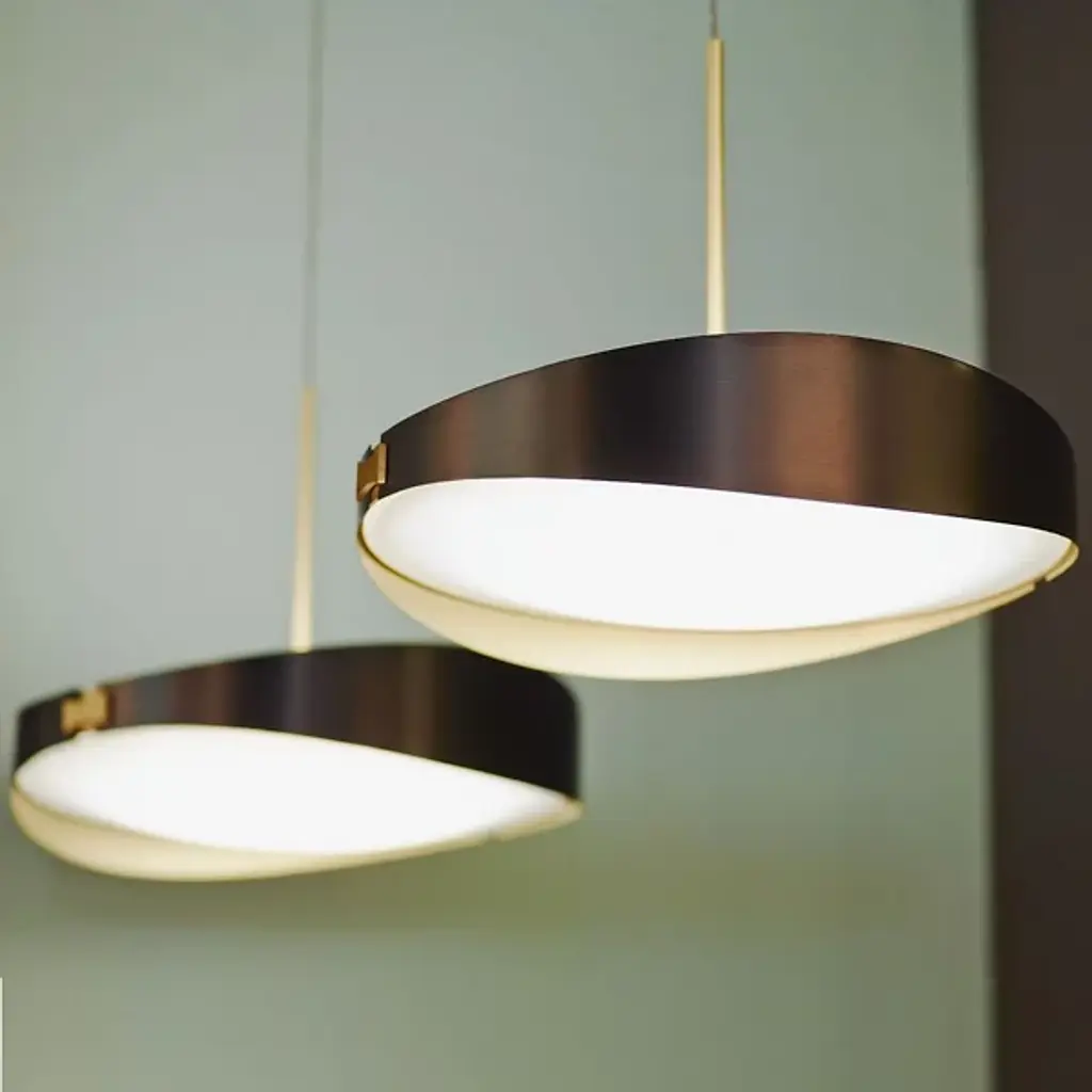 If you have a space you love, put a ring on it. Designer Émilie Cathelineau’s eye for catching the purely elegant elements in design eras of yore shows in the beautiful Ring LED Pendant from CVL Luminaires. It’s a jewel of a design, taking it back to the 60s. It hangs gracefully in the air, producing a silhouette of sweeping curves. Handmade in France, a ring of solid brass ties around the milky surface of a polycarbonate diffuser with polished brass accents. The two curves of the diffuser let you know you’re getting two passes of light. An LED module produces an upward stream of light that elegantly glazes the ceiling and a downward stream that fills out the room.