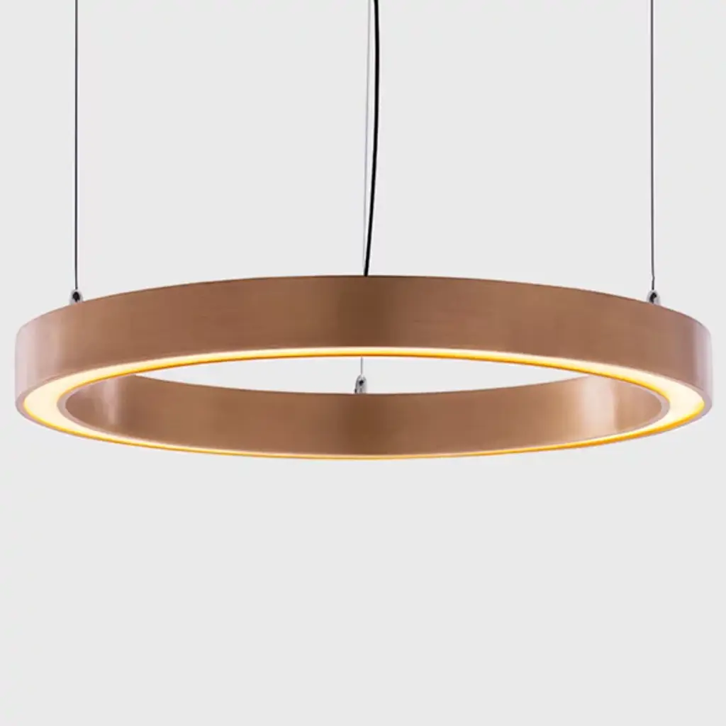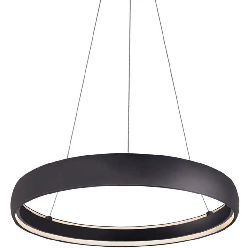 The Ring LED Pendant Light from Viso utilizes solid steel to create a design that is minimal and streamlined. Designer Filipe Lisboa gave the classic shape of a ring a modern update while ensuring that its hand-brushed finish adds dimension and durability to the piece. The highly efficient LED light lining the bottom of the ring shines through a diffuser to fill one's chosen environment with even and ambient illumination.