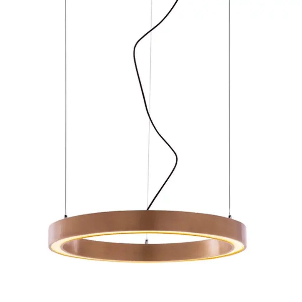 The Ring LED Pendant Light from Viso utilizes solid steel to create a design that is minimal and streamlined. Designer Filipe Lisboa gave the classic shape of a ring a modern update while ensuring that its hand-brushed finish adds dimension and durability to the piece. The highly efficient LED light lining the bottom of the ring shines through a diffuser to fill one's chosen environment with even and ambient illumination.