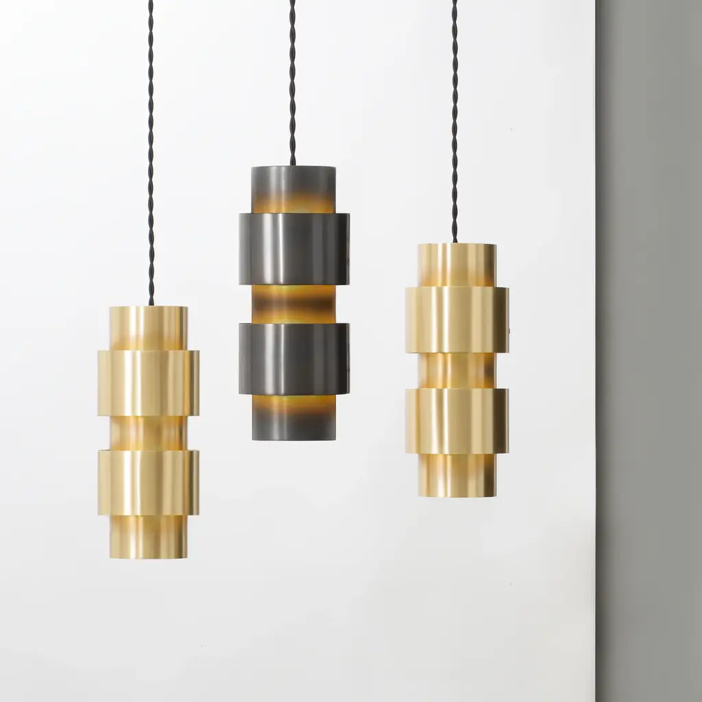 Chiaroscuro, inspired by strong light and shadows. The concept was to create this effect, within one light fitting. The light from within highlights the difference between the ring sizes and adds a dramatic sculptural effect to the light. It is equally beautiful both on and off. Features