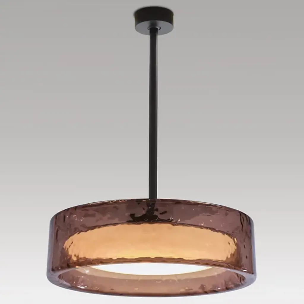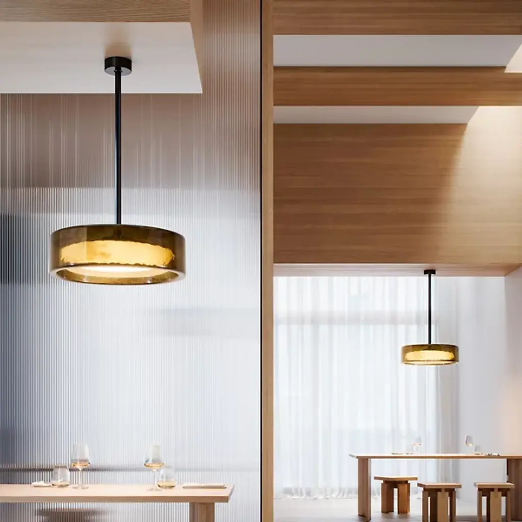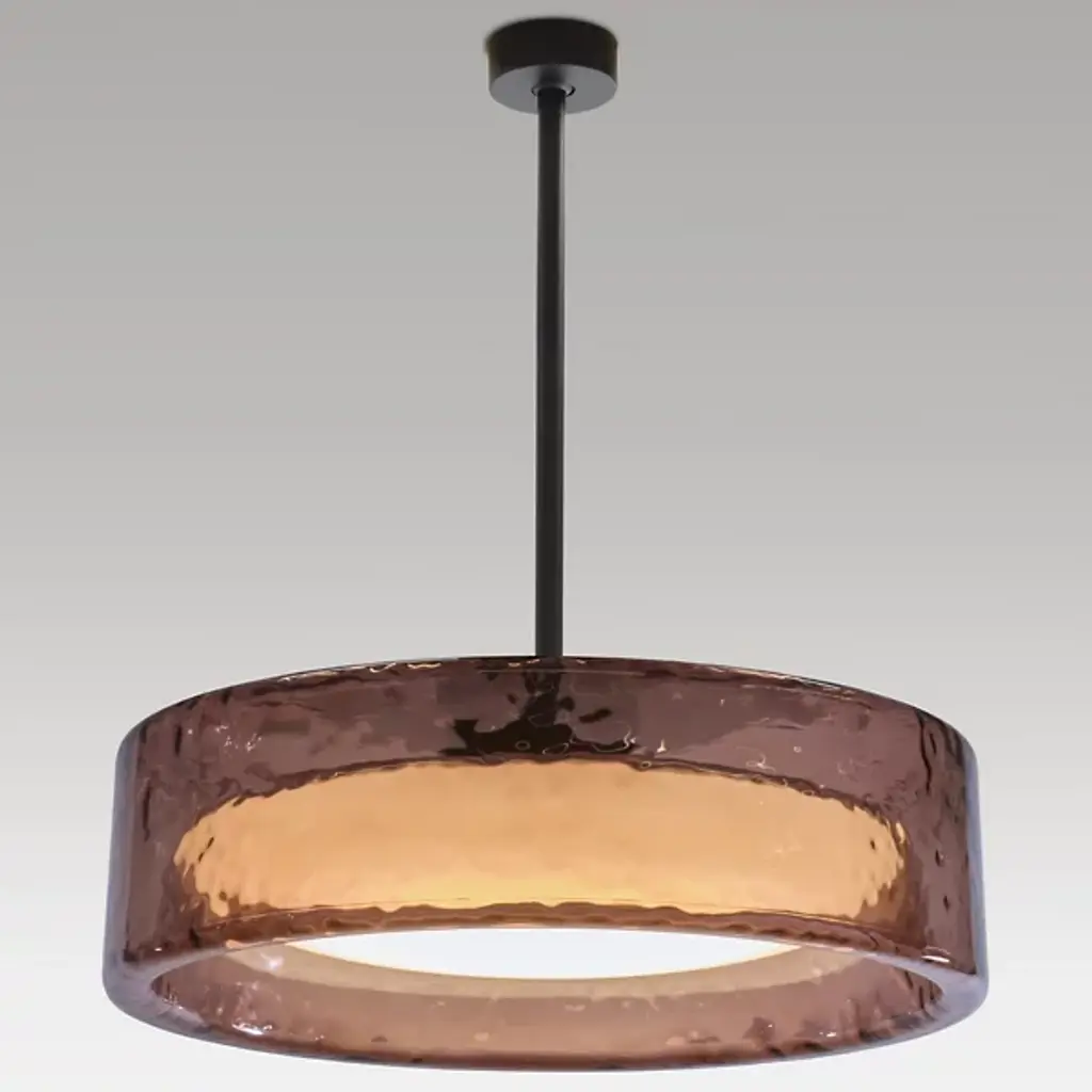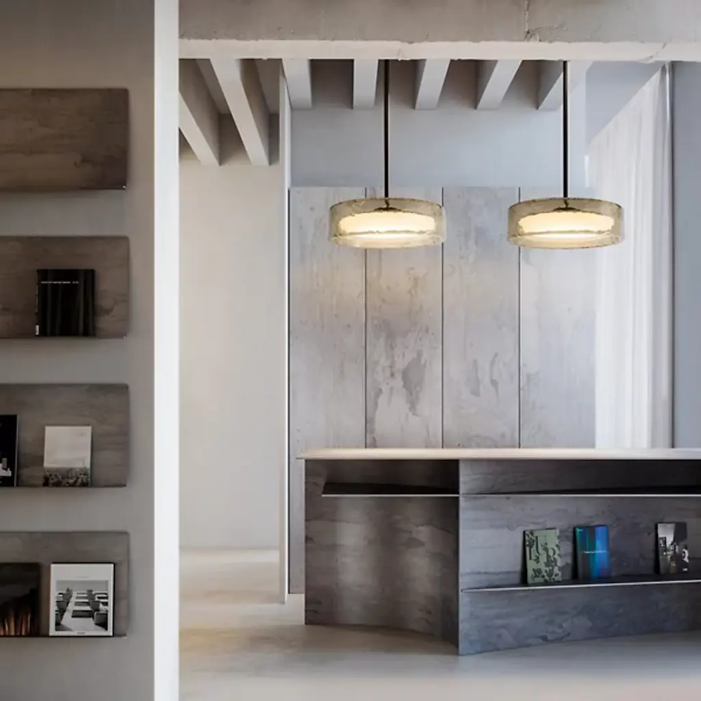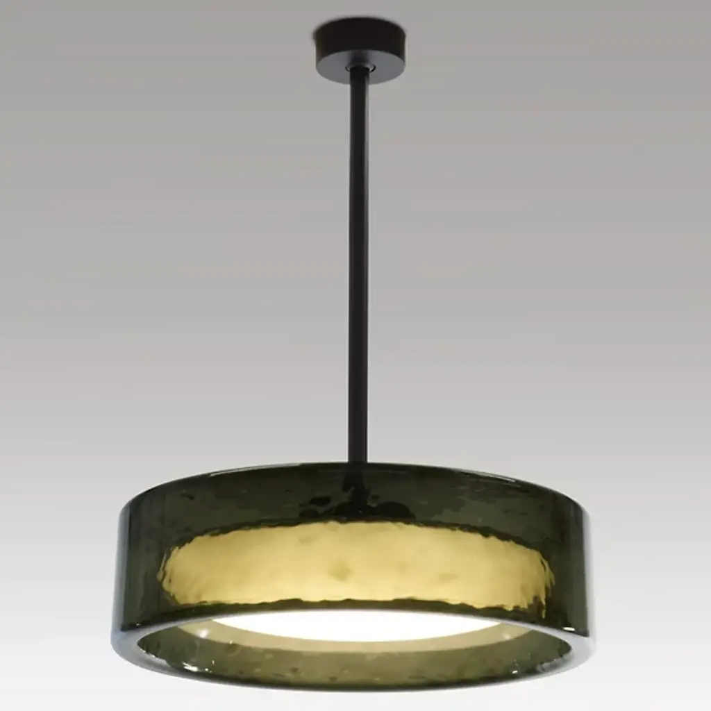 The Ringo LED Drum Pendant from Marset is a large, commanding fixture with precise and restrained artistry that centers light. Designed by Joan Gaspar and made in Spain, it expresses a design philosophy rooted in clarity and restraint. A slim stem suspends an efficient LED light, surrounded by a rotomoulded polycarbonate shade. The shade calls to mind the translucent structure of solid ice that refracts light from within. The fixture emphasizes simple geometry, creating a dialogue between form and light that is at once solid and weightless.