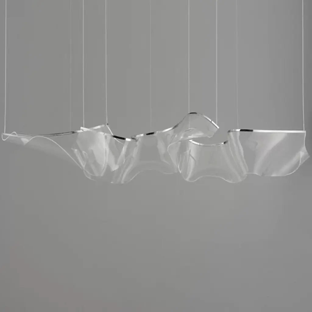Provide lasting illumination to your ceilings with the captivating Rinkle Linear LED Multi Light Pendant by ET2 Lighting, crafted from stainless steel and acrylic. A manifestation of contemporary style, this pendant set offers an airy arrangement of abstract forms with sheets of hand-shaped transparent acrylic descending via slender wires from a rectangular canopy. The glow from energy-efficient LEDs, recessed within strips of gleaming stainless steel, is elegantly captured by the acrylic, creating a luminous effect that appears weightless, creating an adjustable configuration, and turning your lighting into a sculptural masterpiece that transcends imagination.