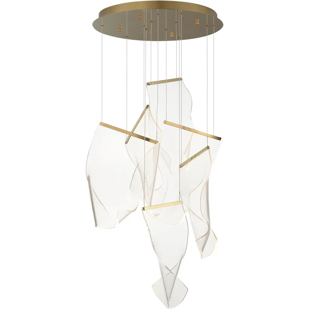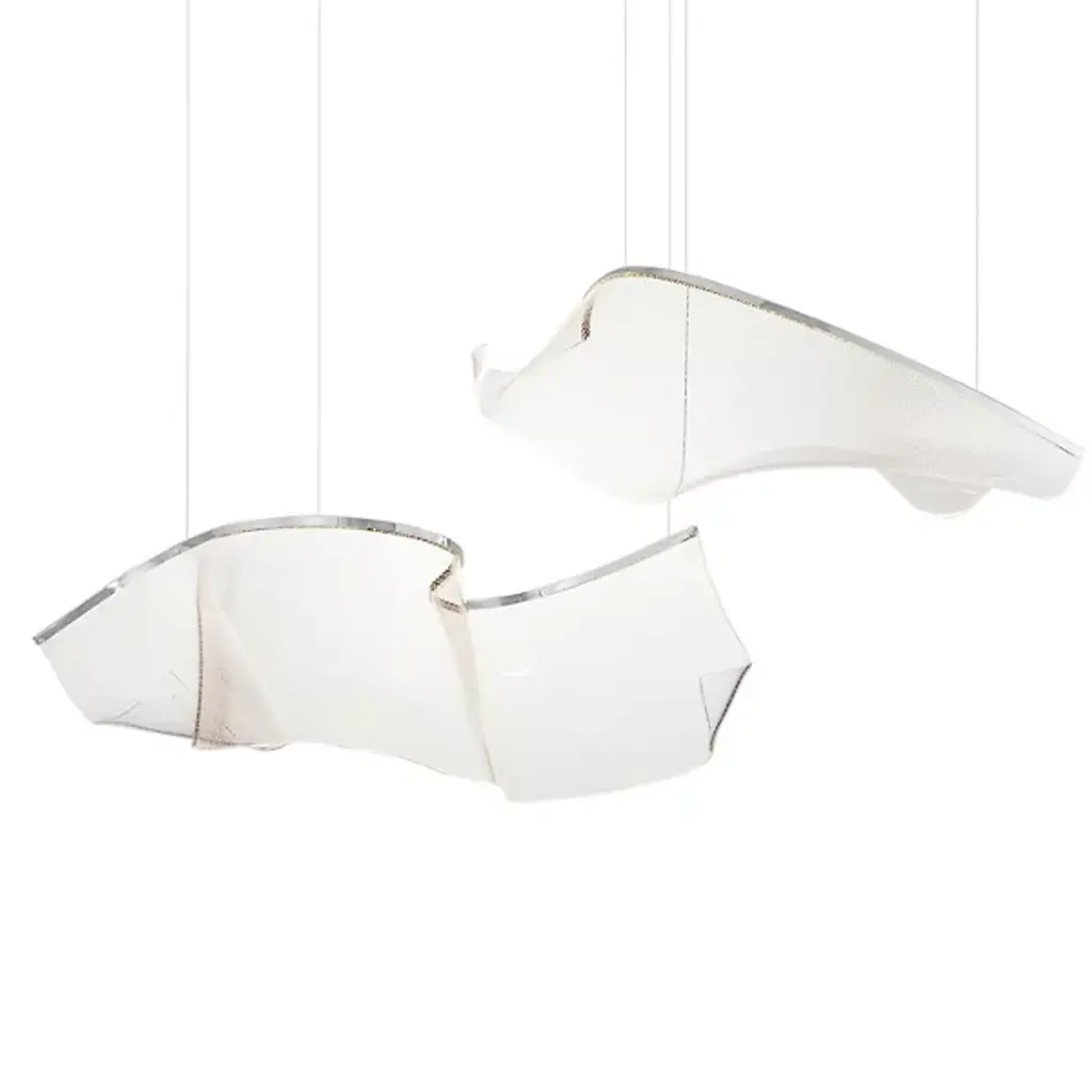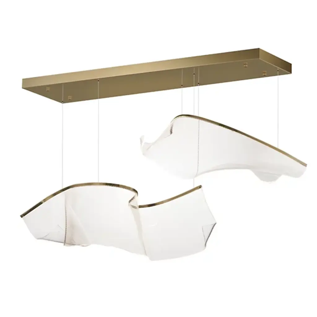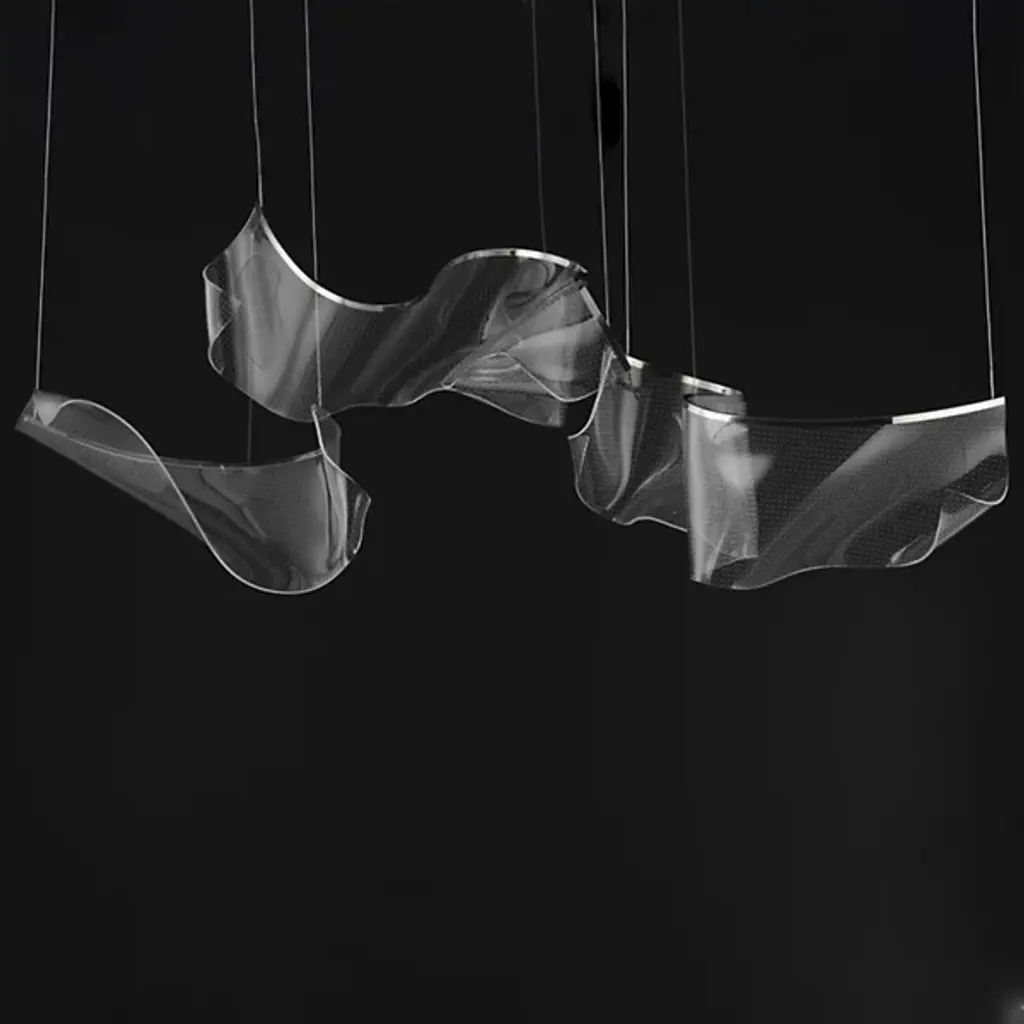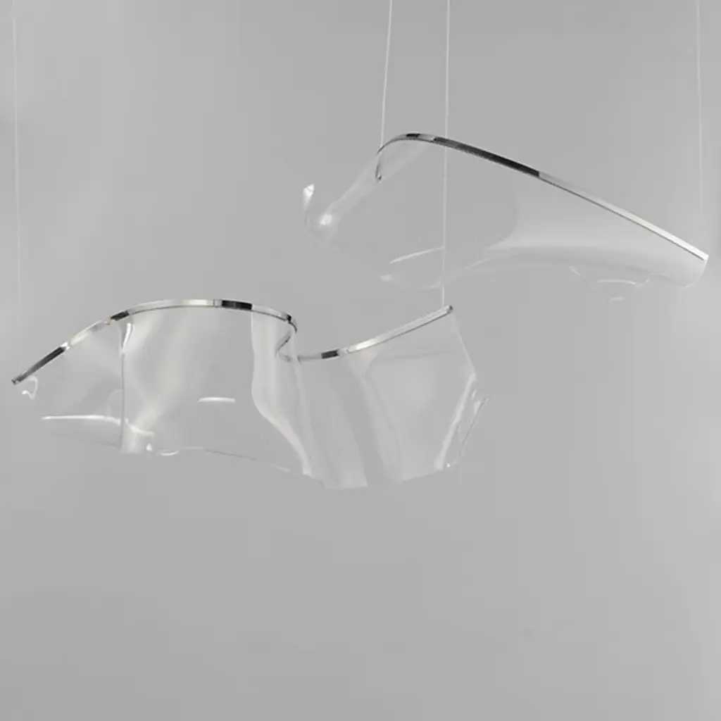 Provide lasting illumination to your ceilings with the captivating Rinkle Linear LED Multi Light Pendant by ET2 Lighting, crafted from stainless steel and acrylic. A manifestation of contemporary style, this pendant set offers an airy arrangement of abstract forms with sheets of hand-shaped transparent acrylic descending via slender wires from a rectangular canopy. The glow from energy-efficient LEDs, recessed within strips of gleaming stainless steel, is elegantly captured by the acrylic, creating a luminous effect that appears weightless, creating an adjustable configuration, and turning your lighting into a sculptural masterpiece that transcends imagination.