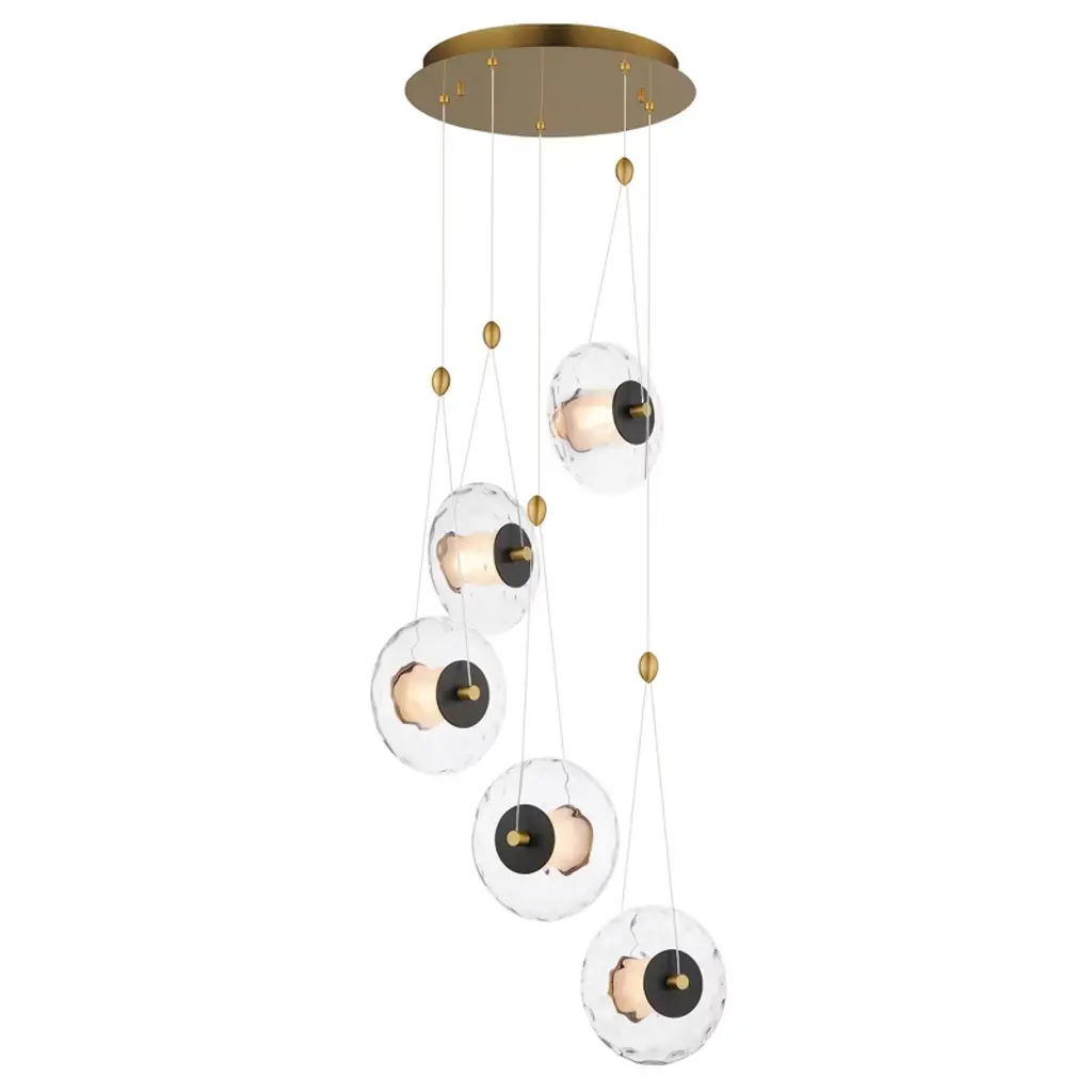 Get the drop on modern design. The Rio Multi-Light Pendant by Jonathan Adler is a cool collection of spherical shades, suspended from staggered field-cuttable Black fabric-wrapped cords. A notched cap holds each shade from the top, creating a droplet-like silhouette. A fun and funky addition to lounges, bars and more.