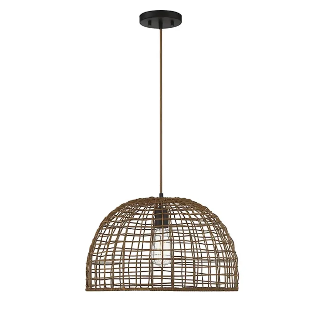Rio Twine Shade Pendant Light Natural - Globe Electric: Etl Listed, Metal & Rattan, Dimmable, Adjustable Height