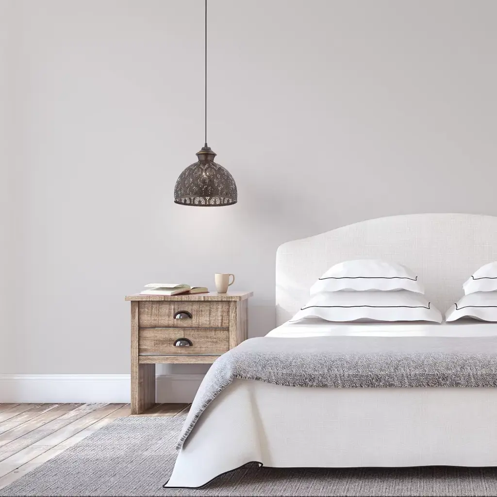 The 11" Merope Antique Bronze Metal Bowl Shade Pendant Light from River of Goods offers a stylish way to add overhead lighting to your home while creating a charming old world-inspired aesthetic. This handcrafted pendant lamp is designed with a hand-forged, bowl-shaped metal shade in an antique bronze finish that brings a warm, bohemian look to your interior decor. The punched-out details all over the exterior of the shade form a stylish pattern while also allowing the light of one 40W E26 light bulb (not included) to shine through. With a style that hardwires into your ceiling and provides an adjustable height, this metal bowl pendant lamp is perfect for placing above a dining table or kitchen island and is compatible with a variety of ceiling heights.