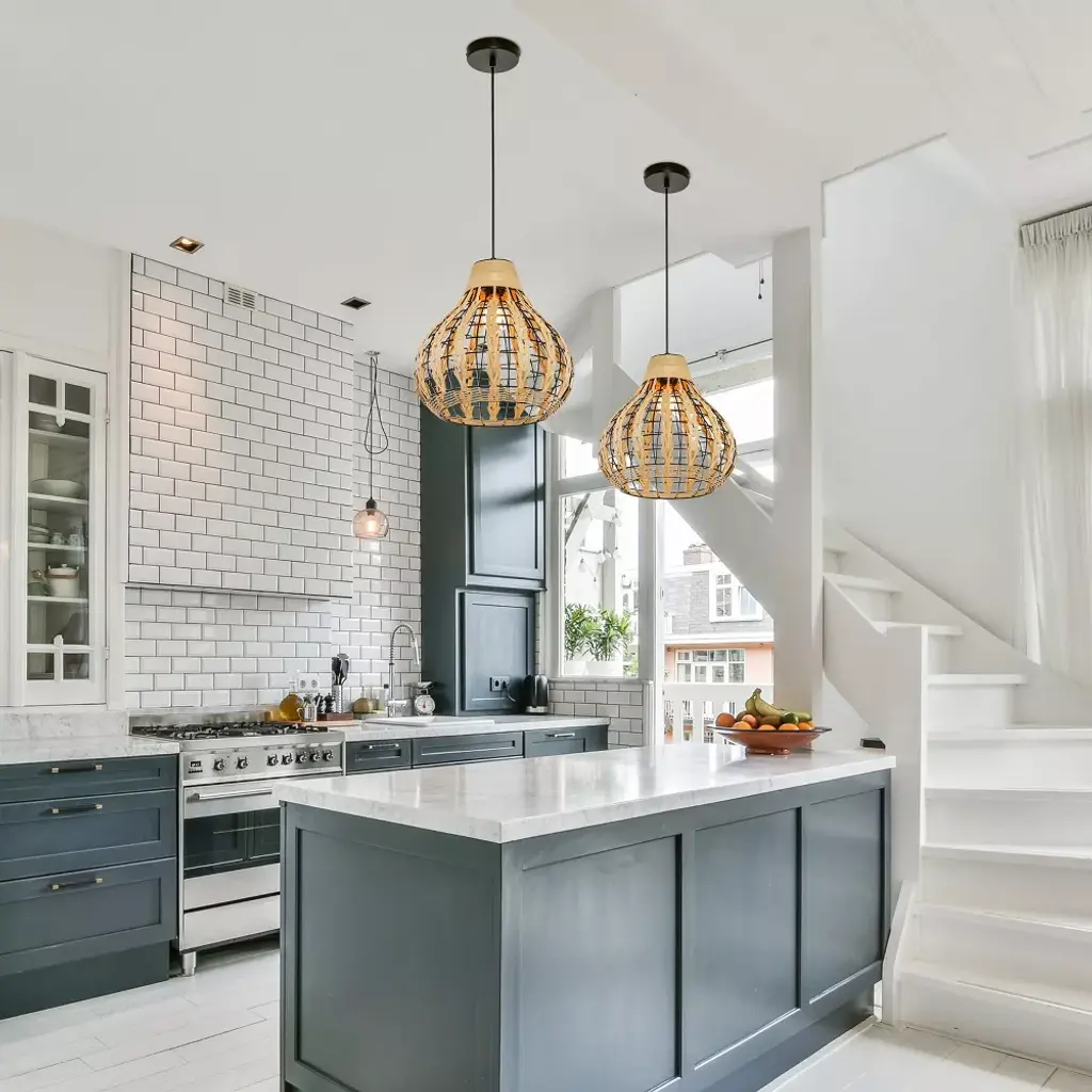 River Of Goods 13" Charlene Metal Pendant Light With Rattan Shade Ceiling Light: Nautical Coastal Beach Decor, Ul Listed, Adjustable Height