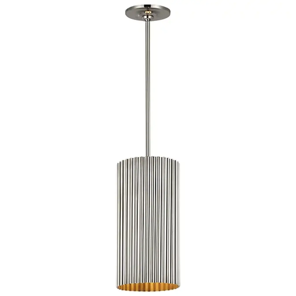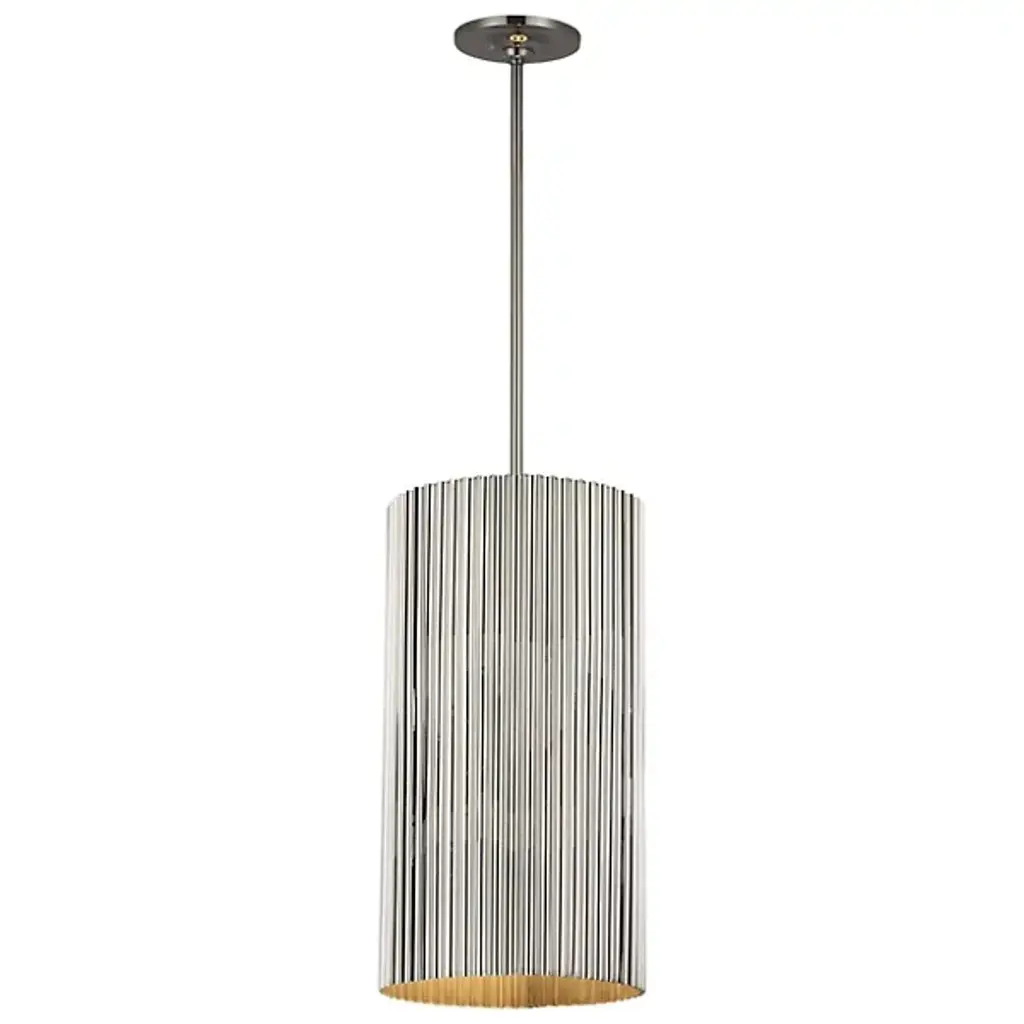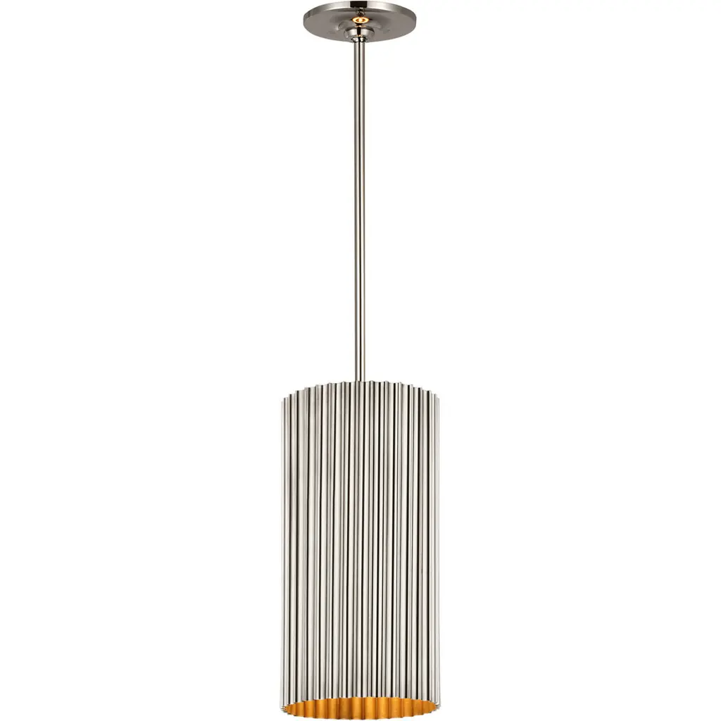 The Rivers Fluted Pendant from Visual Comfort Signature, formerly known as Visual Comfort, holds true to its name by generating a steady, flowing light. The pendant goes for an understated look, making it an easy choice in the modern home. This pendant’s slender suspension lets one arrange a few in a tight series over a table surface. The metal shade produces a graphic silhouette in its clean cylindrical form. The shade’s fine grooves enhance the pendant’s overall style. The light transforms the groove pattern into linear highlights when turned on. Light escapes through the opening as a mellow down glow.