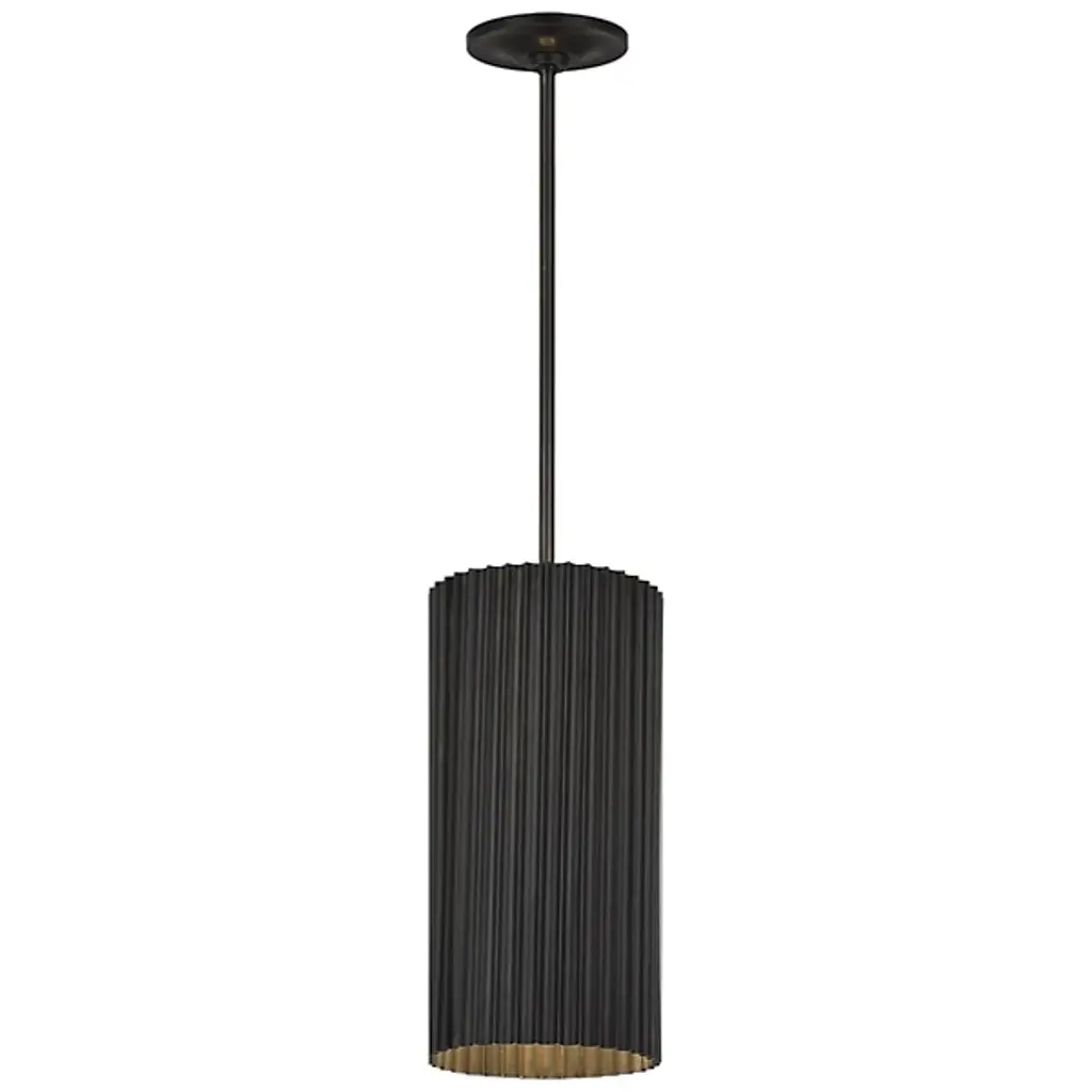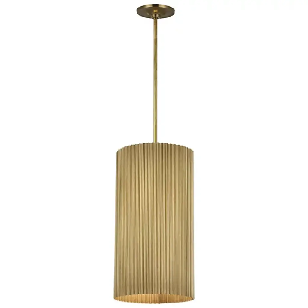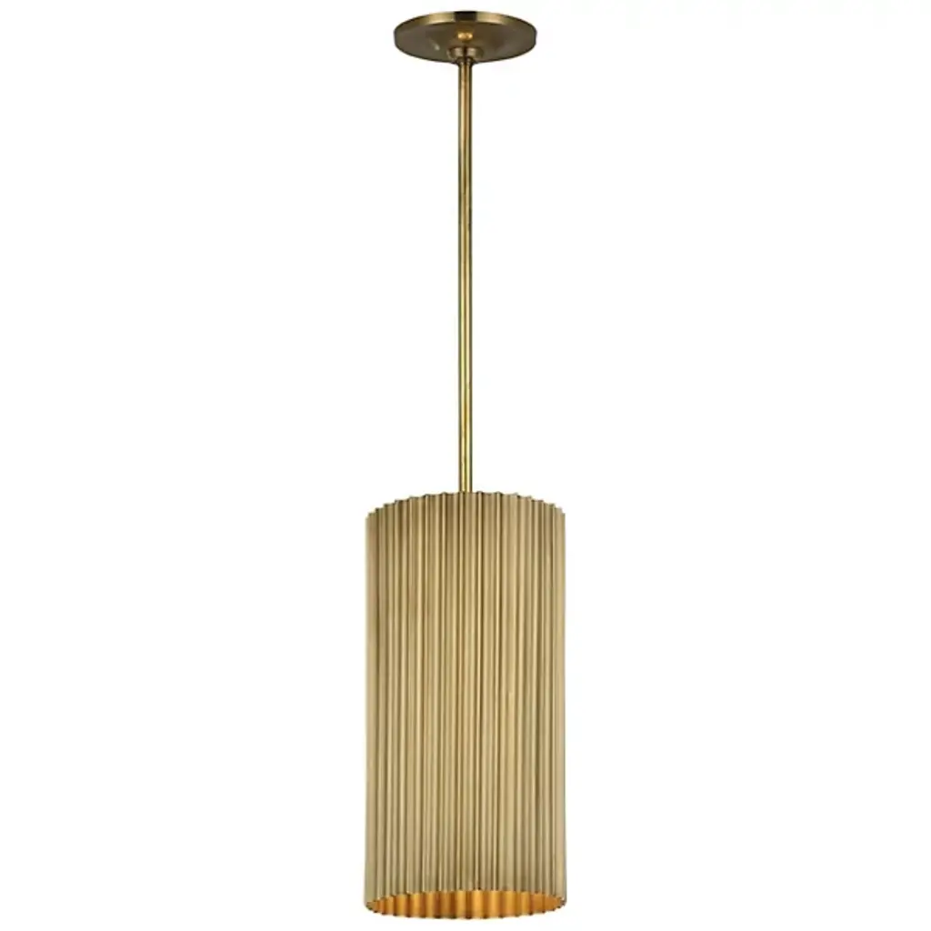 The Rivers Fluted Pendant from Visual Comfort Signature, formerly known as Visual Comfort, holds true to its name by generating a steady, flowing light. The pendant goes for an understated look, making it an easy choice in the modern home. This pendant’s slender suspension lets one arrange a few in a tight series over a table surface. The metal shade produces a graphic silhouette in its clean cylindrical form. The shade’s fine grooves enhance the pendant’s overall style. The light transforms the groove pattern into linear highlights when turned on. Light escapes through the opening as a mellow down glow.
