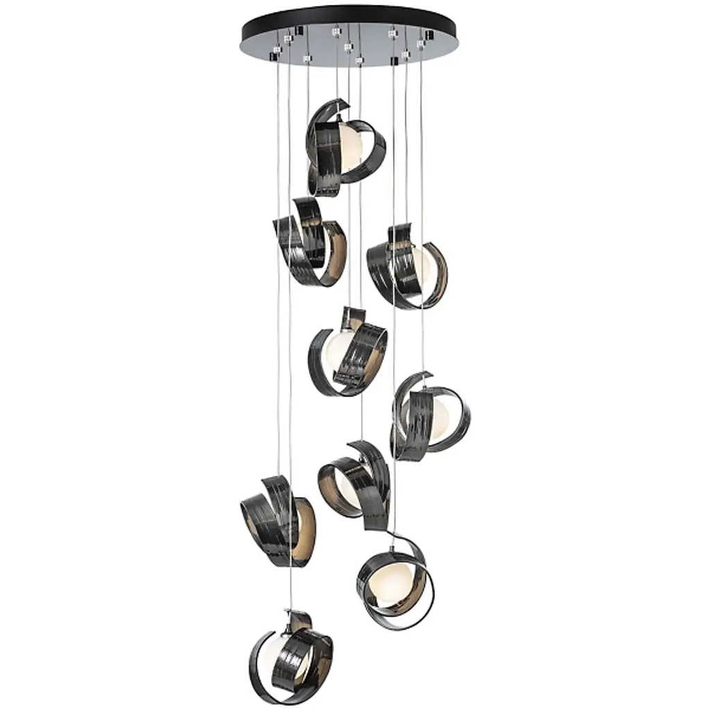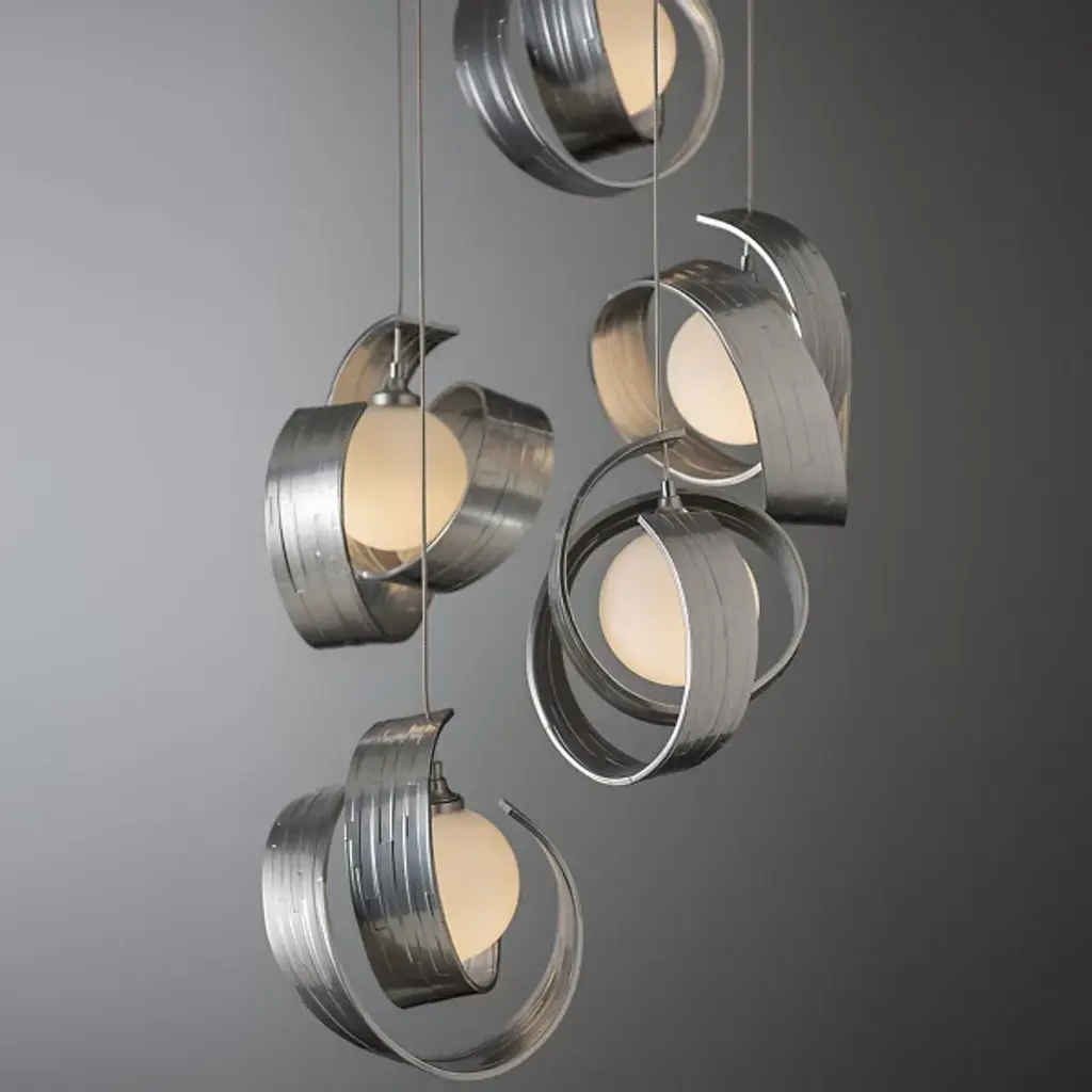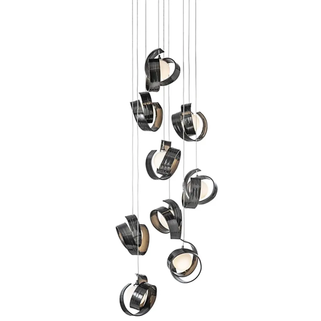 Lighting designed to literally be jewelry for your home. The Riza Multi-Light Pendant by Hubbardton Forge was designed by jeweler Ori Goldberg with a careful eye for the details. Around each of the light-diffusing glass spheres, a curl of aluminum swirls and brings graceful artistry, while a specially created tooling gives each hand-hammered curl its distinctive and clearly visible texture. The multi-port canopy allows for continual height adjustment of each pendant, so you can always have the custom configuration you need in a foyer or dining area.
