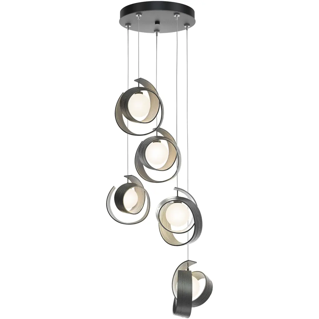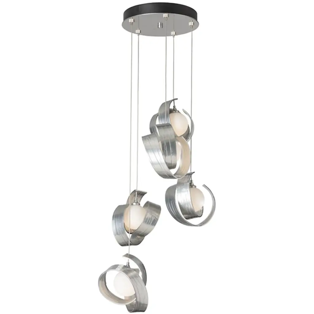 Lighting designed to literally be jewelry for your home. The Riza Multi-Light Pendant by Hubbardton Forge was designed by jeweler Ori Goldberg with a careful eye for the details. Around each of the light-diffusing glass spheres, a curl of aluminum swirls and brings graceful artistry, while a specially created tooling gives each hand-hammered curl its distinctive and clearly visible texture. The multi-port canopy allows for continual height adjustment of each pendant, so you can always have the custom configuration you need in a foyer or dining area.