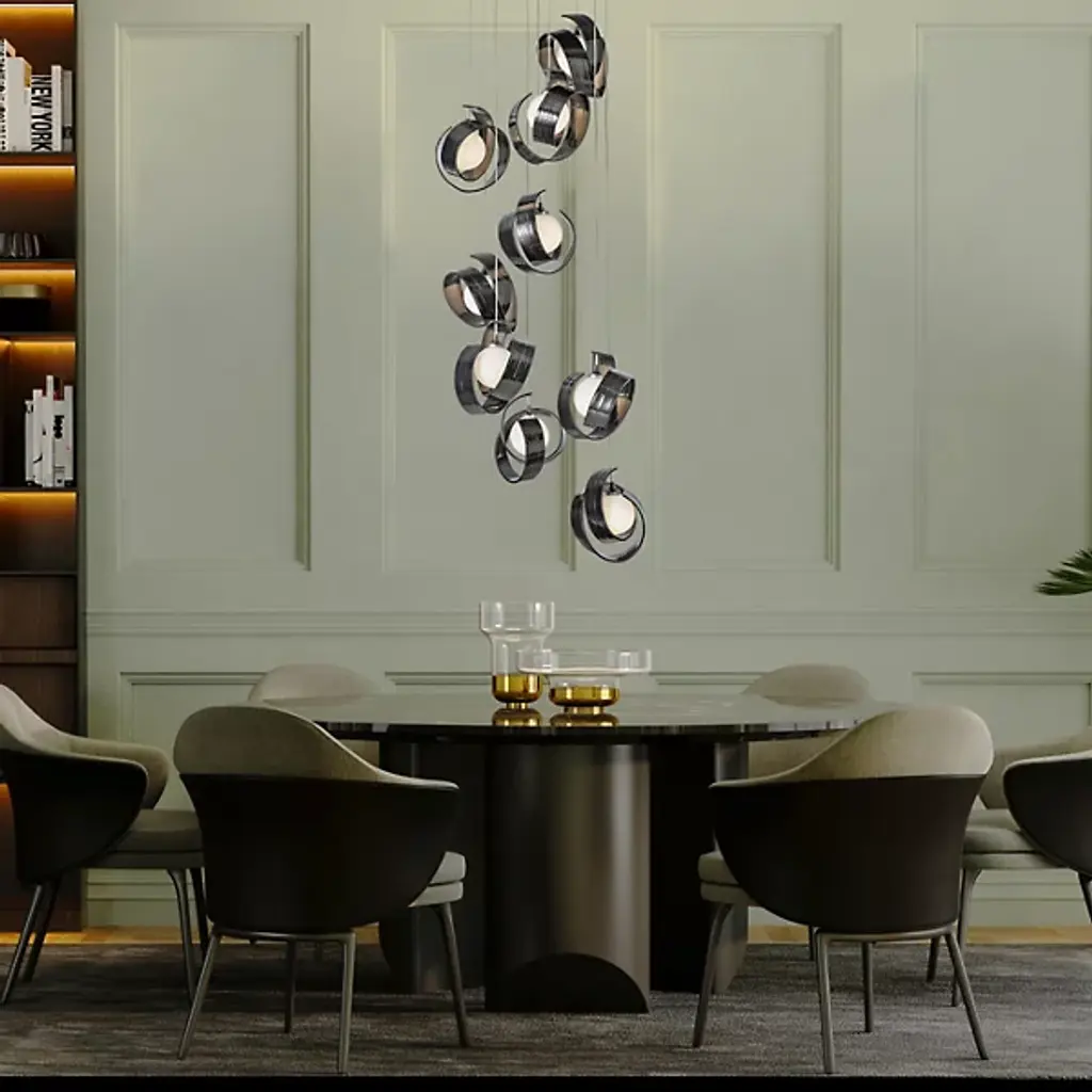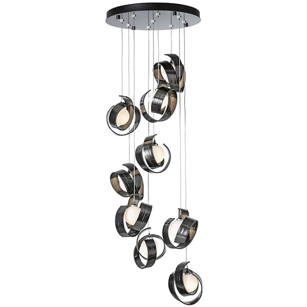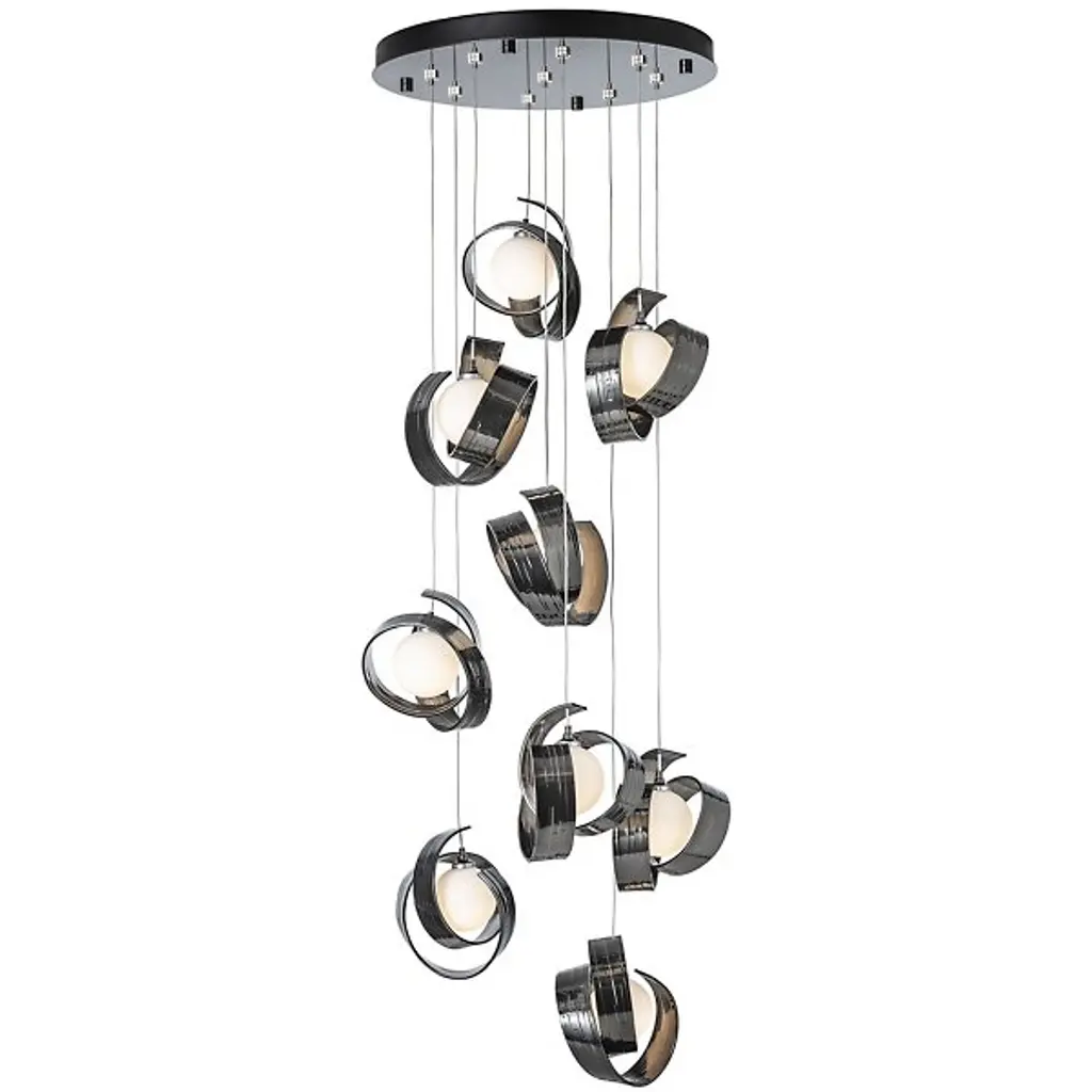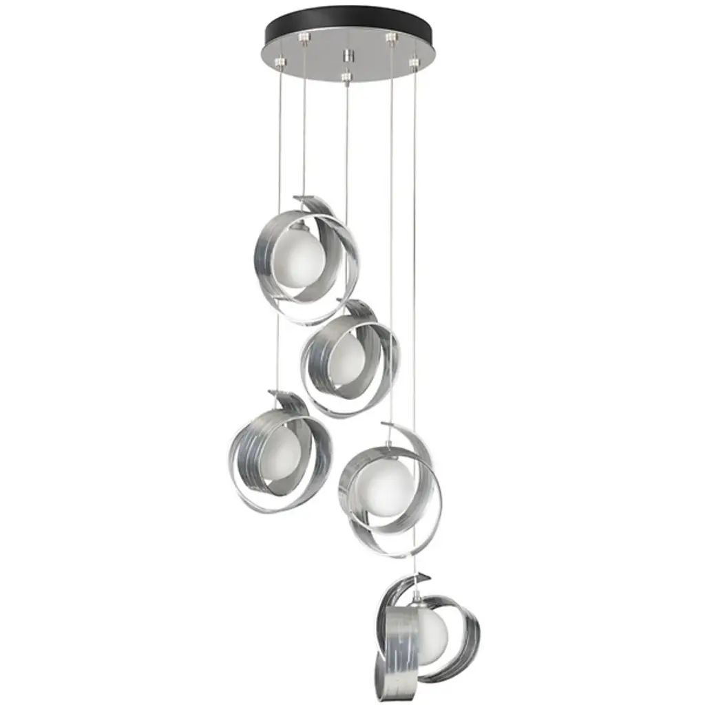 Lighting designed to literally be jewelry for your home. The Riza Multi-Light Pendant by Hubbardton Forge was designed by jeweler Ori Goldberg with a careful eye for the details. Around each of the light-diffusing glass spheres, a curl of aluminum swirls and brings graceful artistry, while a specially created tooling gives each hand-hammered curl its distinctive and clearly visible texture. The multi-port canopy allows for continual height adjustment of each pendant, so you can always have the custom configuration you need in a foyer or dining area.