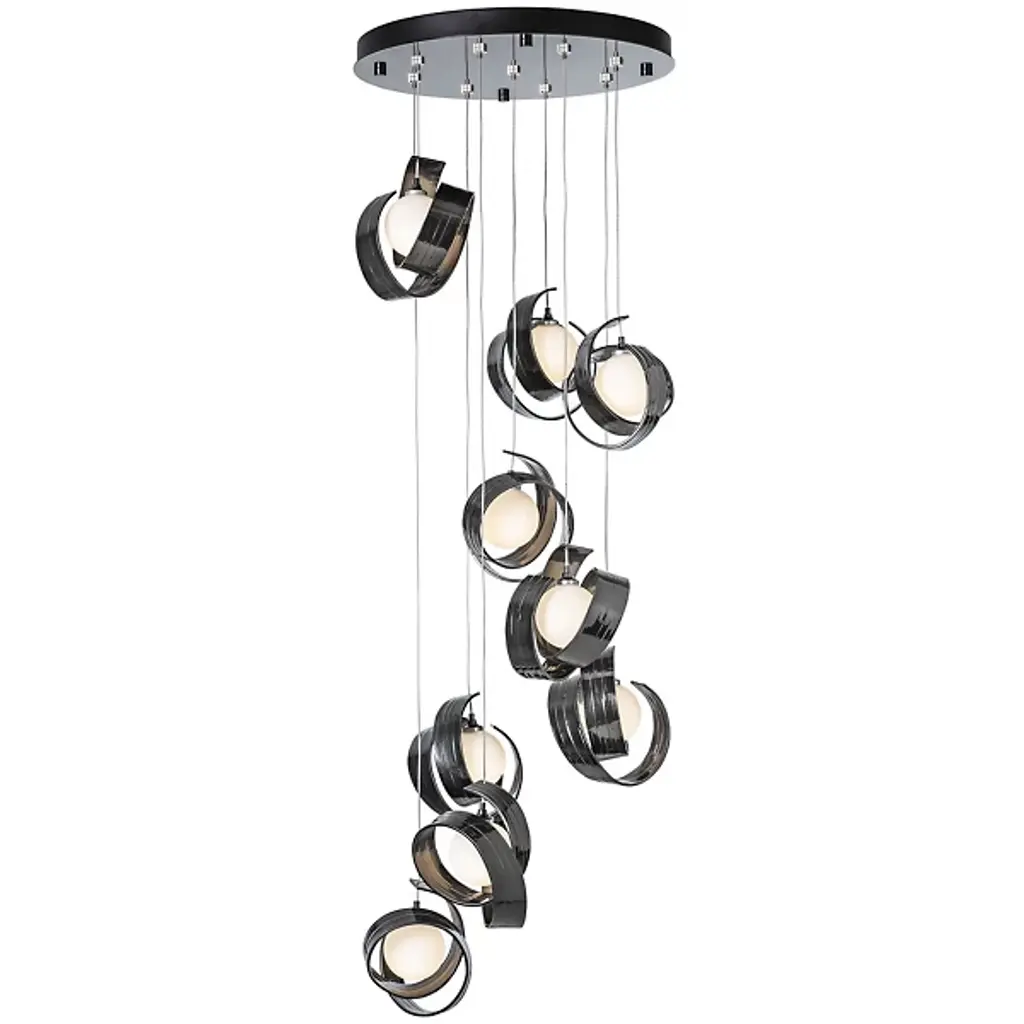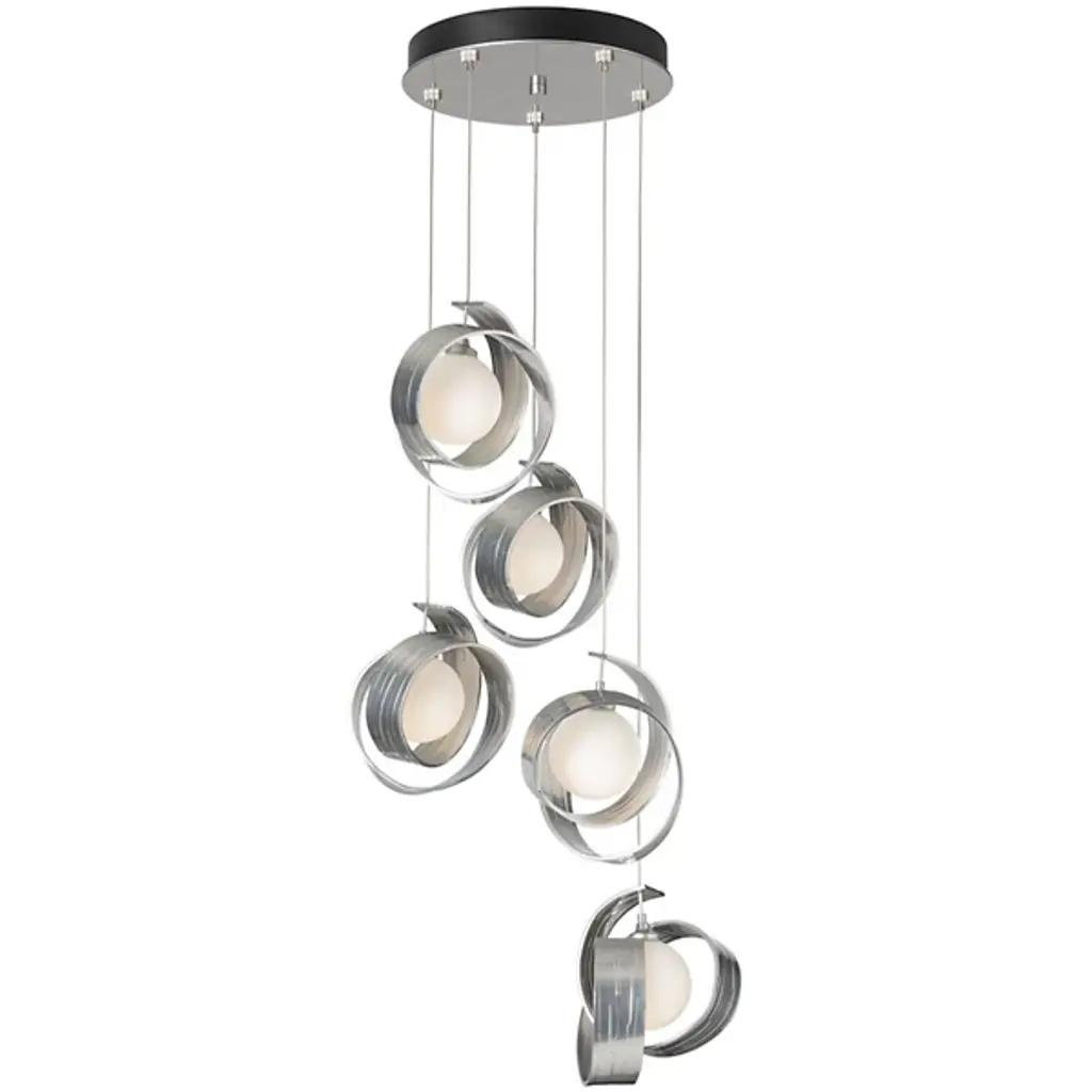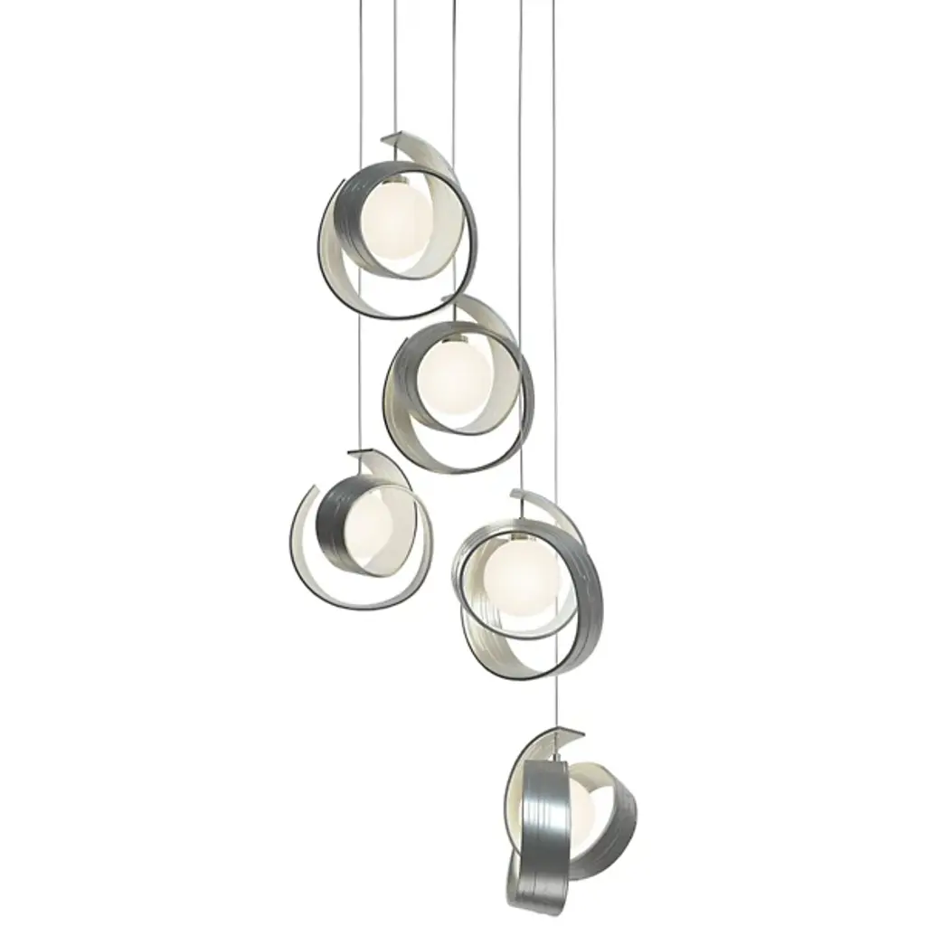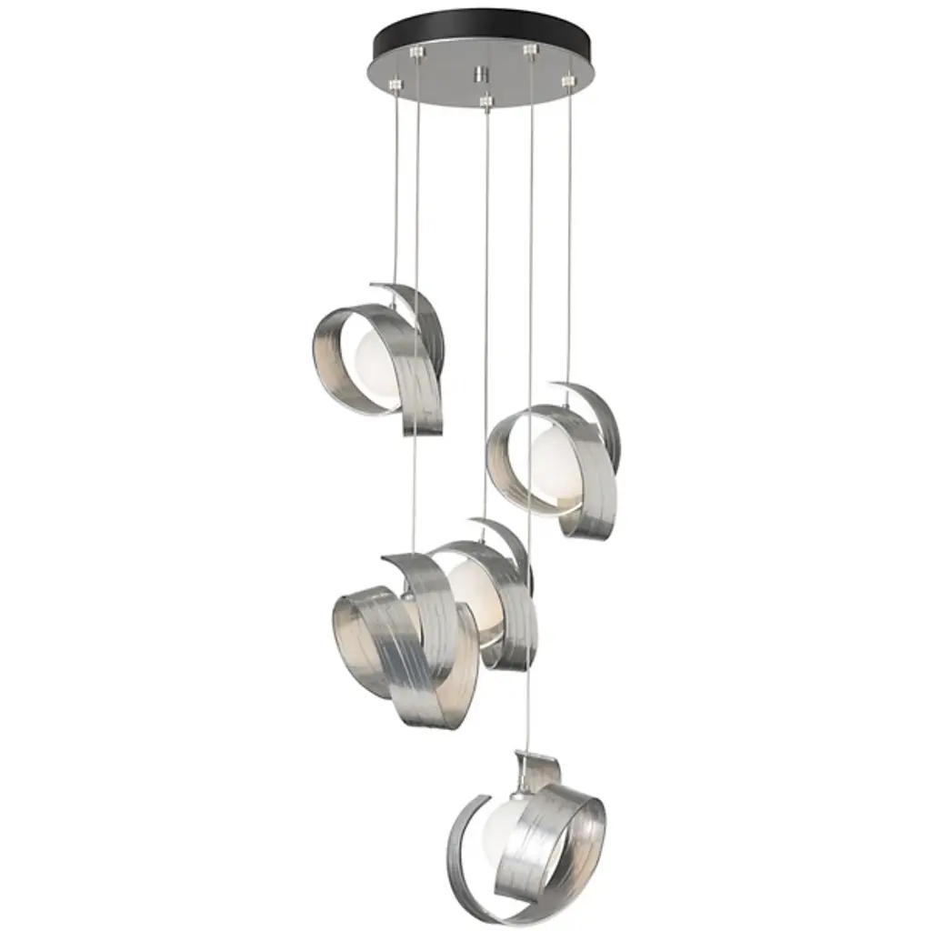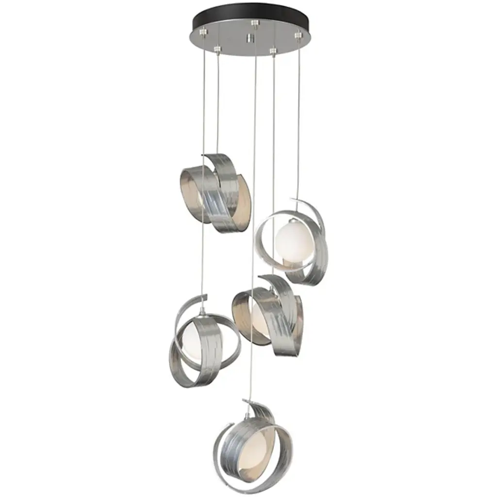 Lighting designed to literally be jewelry for your home. The Riza Multi-Light Pendant by Hubbardton Forge was designed by jeweler Ori Goldberg with a careful eye for the details. Around each of the light-diffusing glass spheres, a curl of aluminum swirls and brings graceful artistry, while a specially created tooling gives each hand-hammered curl its distinctive and clearly visible texture. The multi-port canopy allows for continual height adjustment of each pendant, so you can always have the custom configuration you need in a foyer or dining area.