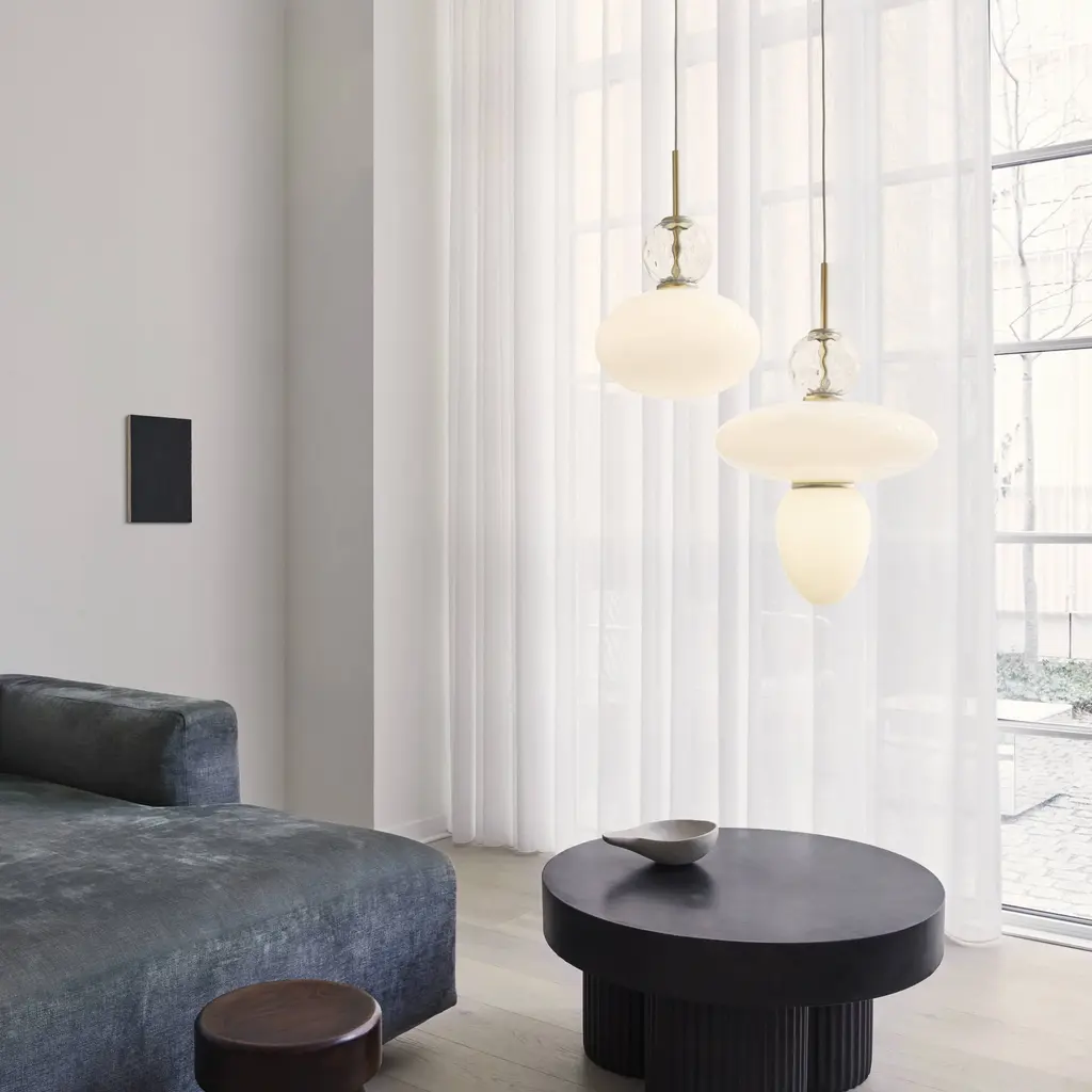 Gorgeously rendered in mouth-blown glass and satin brass, the height-adjustable Rizzatto 43 makes a refined statement above a dining table or sofa. Named for its Milanese creator Paolo Rizzatto, it spreads soft and even illumination, gloriously diffused through opal-white glass. An enduring composition from a legendary designer, Rizzato's collaboration with Danish brand Nuura was his first since the 1978 inception of his own company Luceplan.