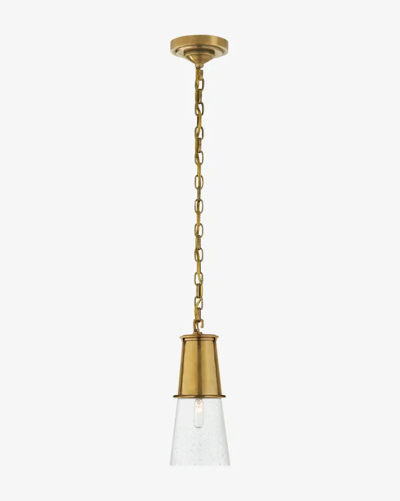 With a full array of metal finishes, and shade options, the streamlined silhouette of the Robinson Pendant looks good in any material mix.