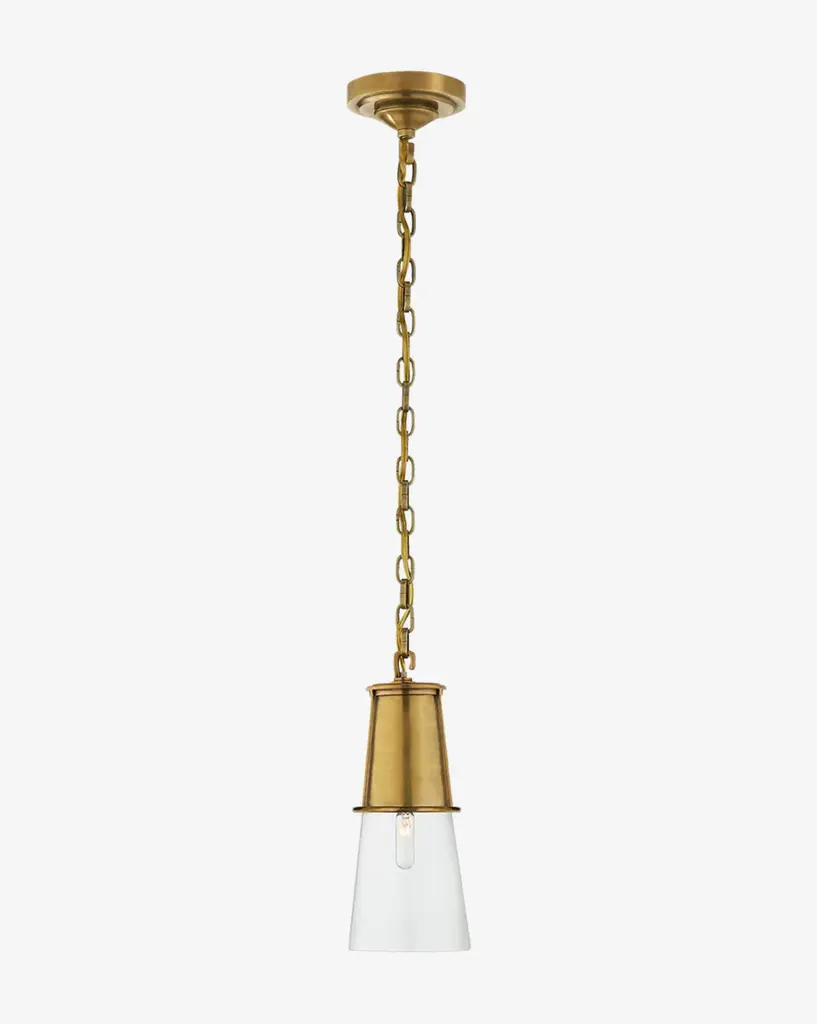 With a full array of metal finishes, and shade options, the streamlined silhouette of the Robinson Pendant looks good in any material mix.