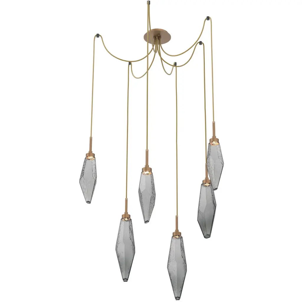 Rock Crystal Led 13.5 Inch Burnished Bronze Swag Multi-Pendant Ceiling Light In 3000k Led, Chilled Smoke
