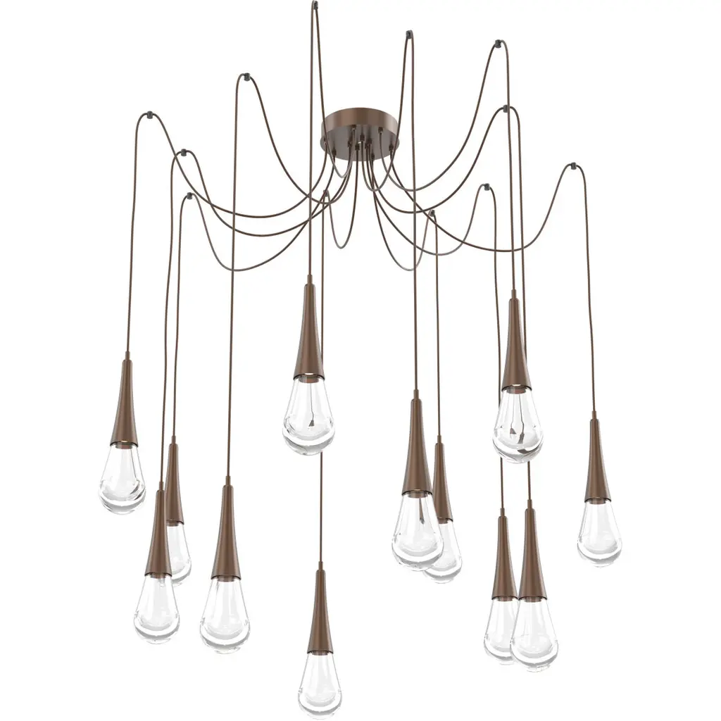 Rock Crystal Led 13.5 Inch Flat Bronze Swag Multi-Pendant Ceiling Light In 3000k Led, Chilled Smoke