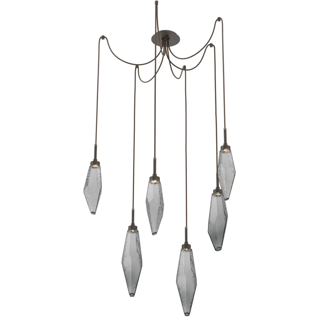 Rock Crystal Led 13.5 Inch Flat Bronze Swag Multi-Pendant Ceiling Light In Chilled Smoke, 2700k Led