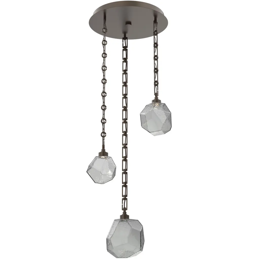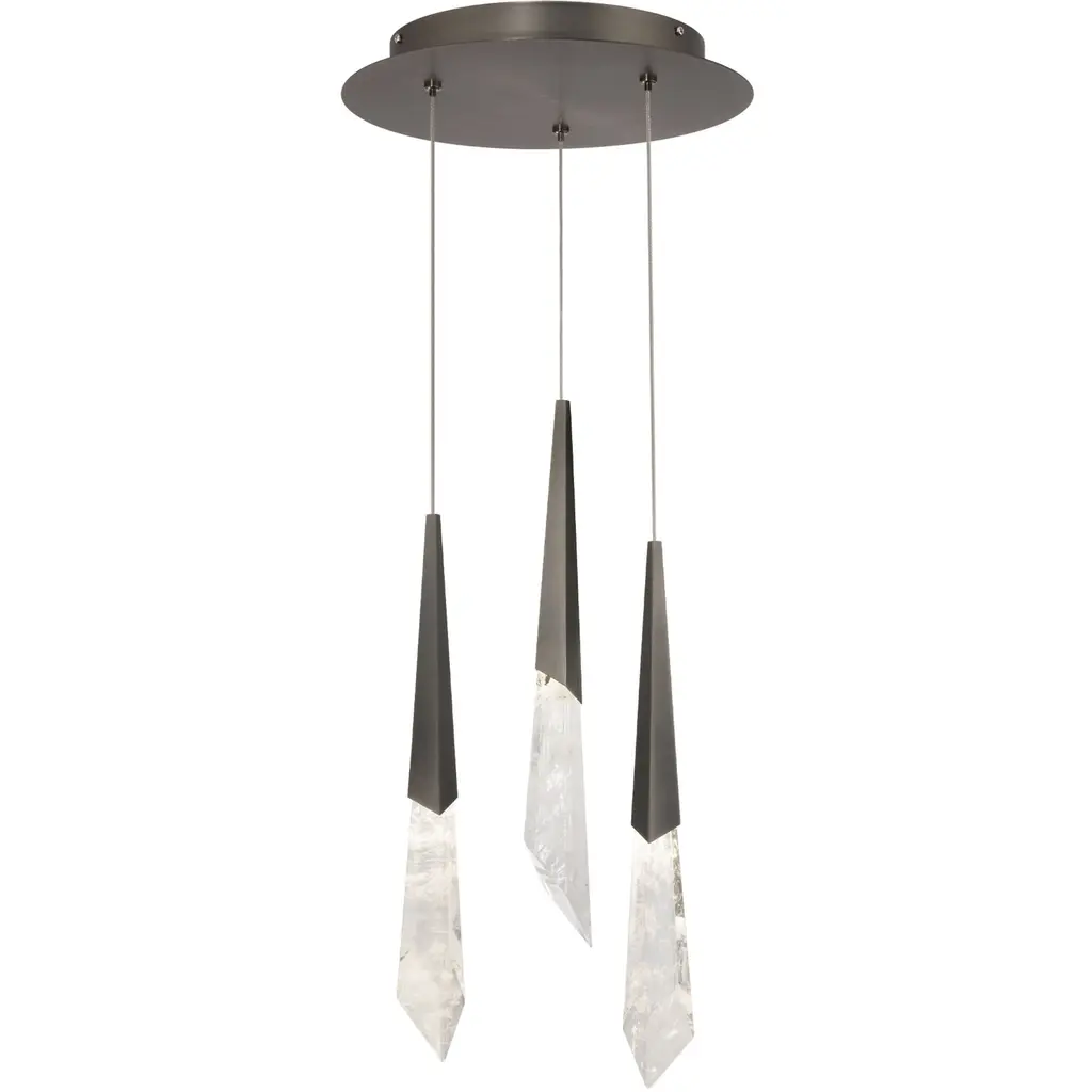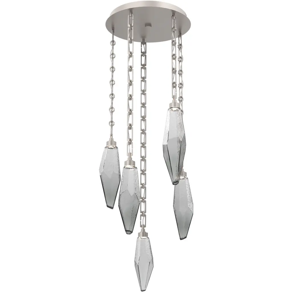 Capturing the raw beauty of natural rock quartz in LED-illuminated artisan blown glass, the Rock Crystal round multi-pendant chandelier balances organic-inspired contemporary and modern design. Suspension options include cloth-braided cord or handcrafted chain in three vintage-inspired styles.