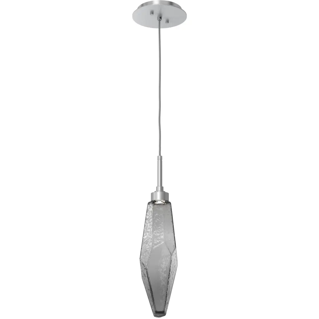 Rock Crystal Pendant-17-Metallic Beige Silver-Chilled Blown Glass - Smoke-Silver Cloth Braided Cord-LED