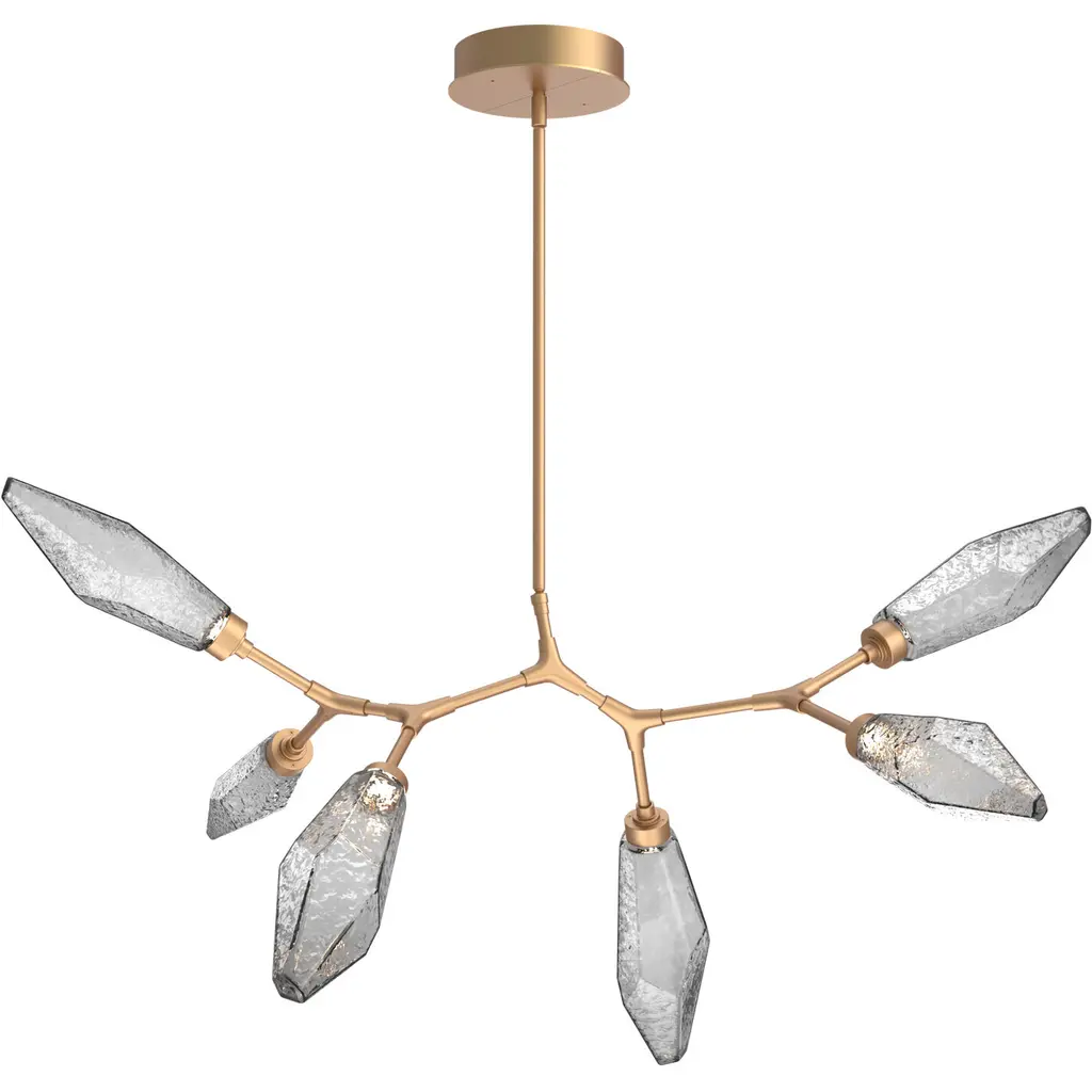 Rock Crystal Modern Branch - 6 pc-Classic Silver-Chilled Blown Glass - Smoke-Threaded Rod Suspension-LED