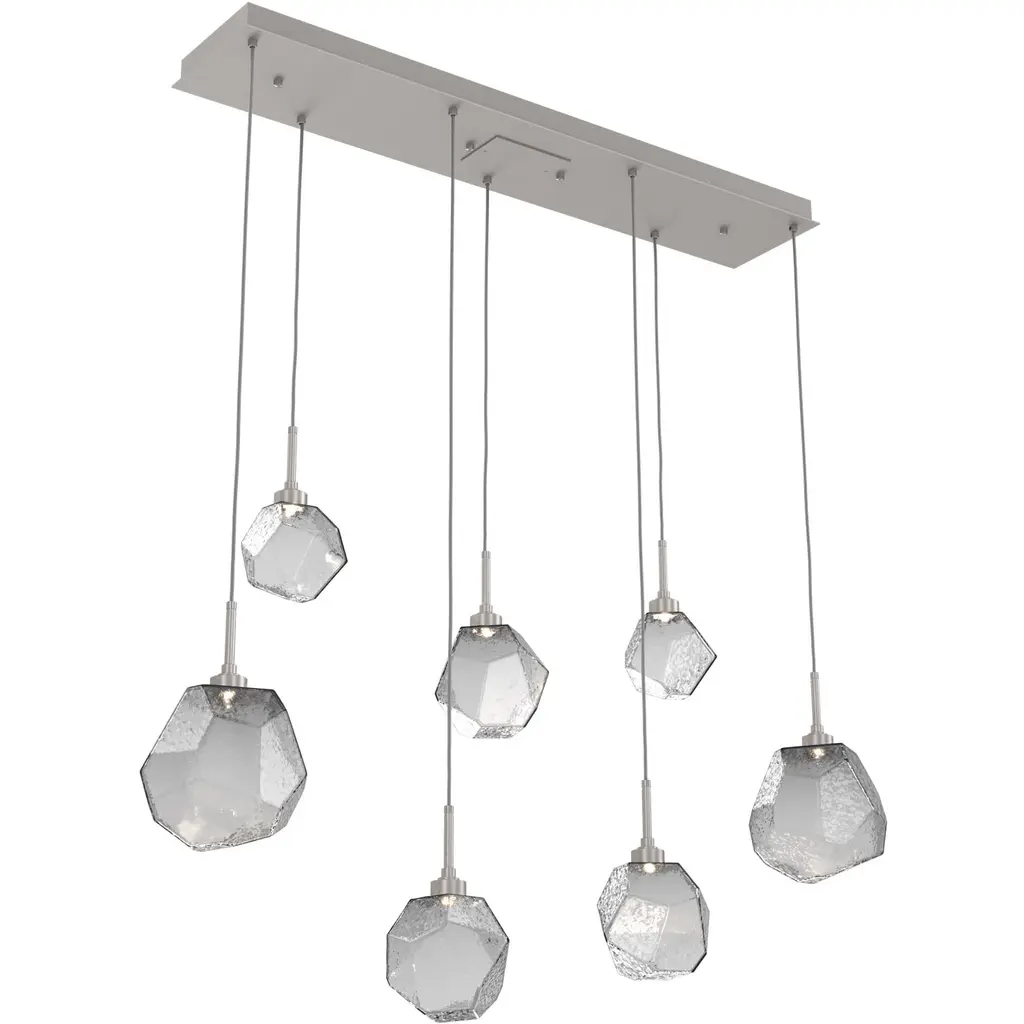 Rock Crystal Led Beige Silver Linear Pendant Ceiling Light In Metallic Beige Silver, Chilled Smoke, 2700k Led, Multi-Port