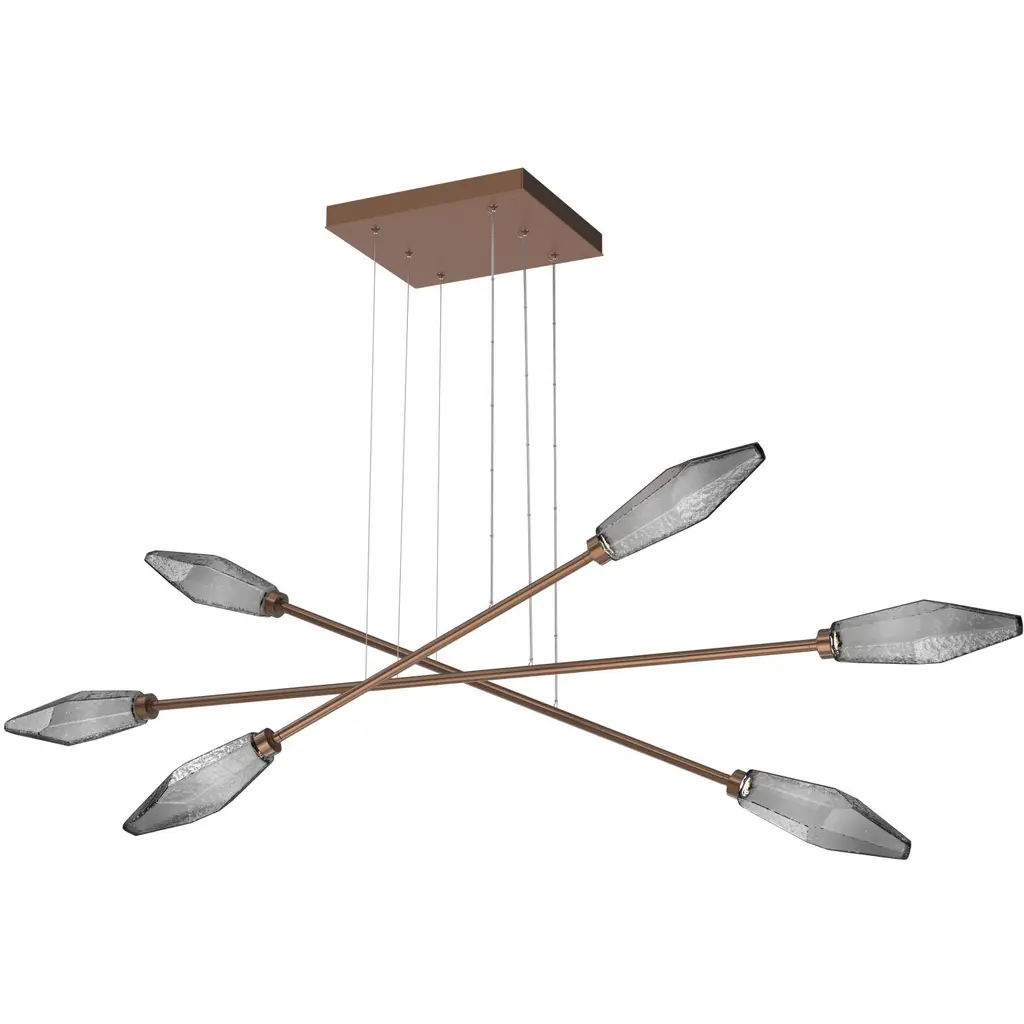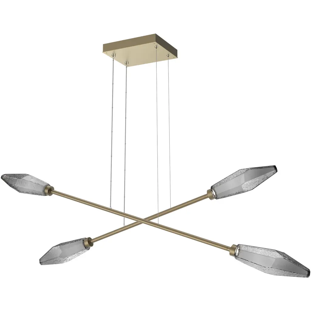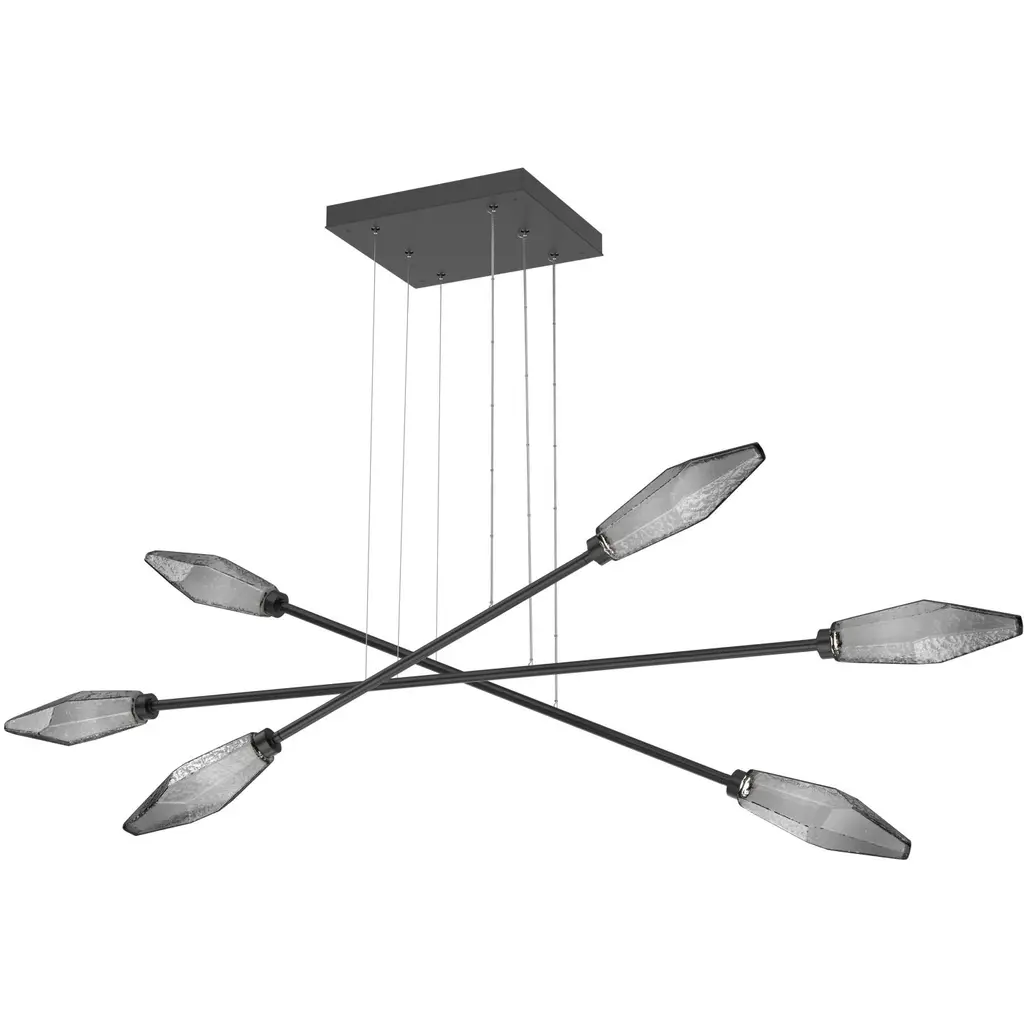 Rock Crystal Led Graphite Linear Multi-Pendant Ceiling Light In Smoke, 2700k Led, Triple Moda