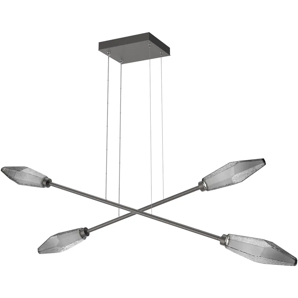 Rock Crystal Led Matte Black Linear Multi-Pendant Ceiling Light In Smoke, 2700k Led, Triple Moda