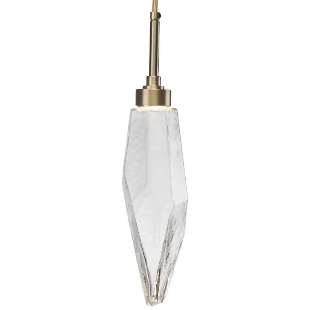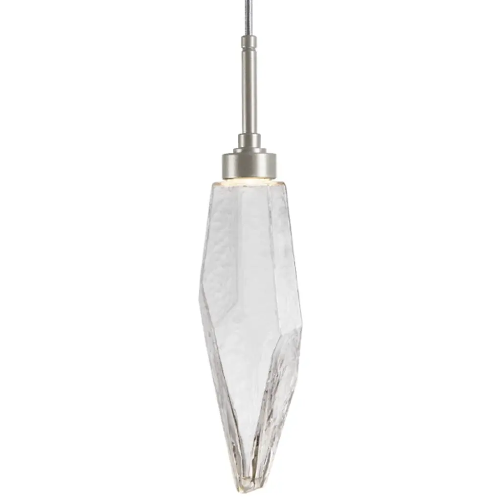 Enliven your indoor spaces with the simple structure of the Rock Crystal LED Mini Pendant by Hammerton Studio. A Levi Wilson design, it starts with a smooth canopy that drops a slender cable to a metal housing for an LED. The diffuser is made from crystal glass blown by artisans to evoke a natural appearance while reducing bright glare from the small but powerful lamping to a friendlier glow around the fixture.