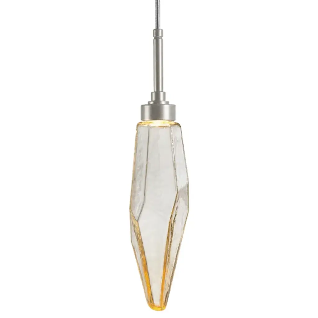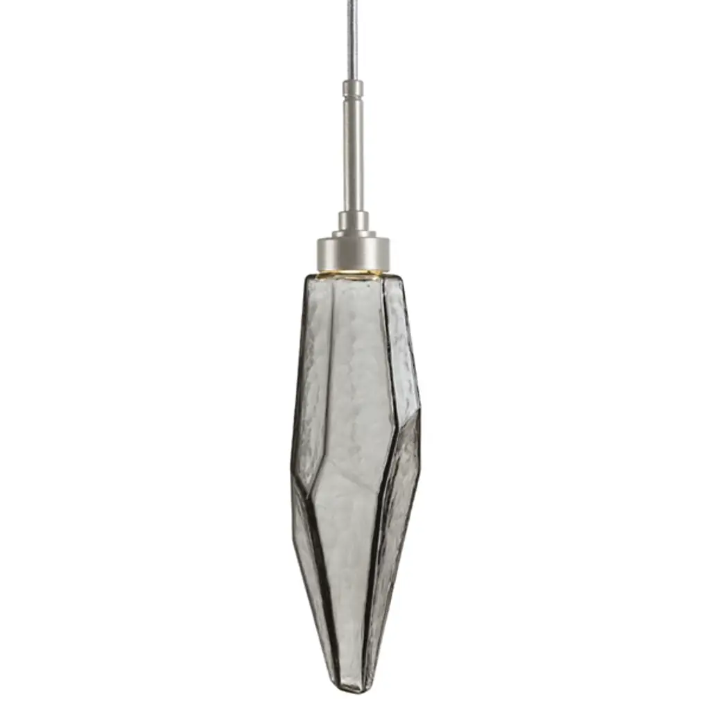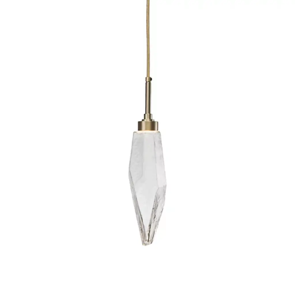 Enliven your indoor spaces with the simple structure of the Rock Crystal LED Mini Pendant by Hammerton Studio. A Levi Wilson design, it starts with a smooth canopy that drops a slender cable to a metal housing for an LED. The diffuser is made from crystal glass blown by artisans to evoke a natural appearance while reducing bright glare from the small but powerful lamping to a friendlier glow around the fixture.