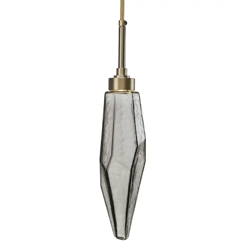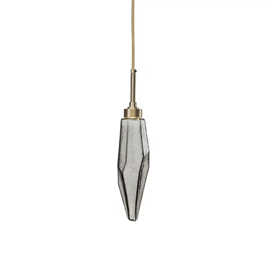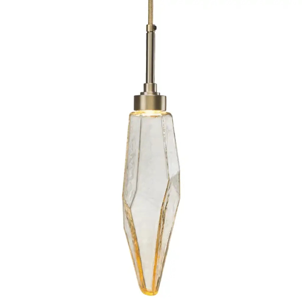 Enliven your indoor spaces with the simple structure of the Rock Crystal LED Mini Pendant by Hammerton Studio. A Levi Wilson design, it starts with a smooth canopy that drops a slender cable to a metal housing for an LED. The diffuser is made from crystal glass blown by artisans to evoke a natural appearance while reducing bright glare from the small but powerful lamping to a friendlier glow around the fixture.