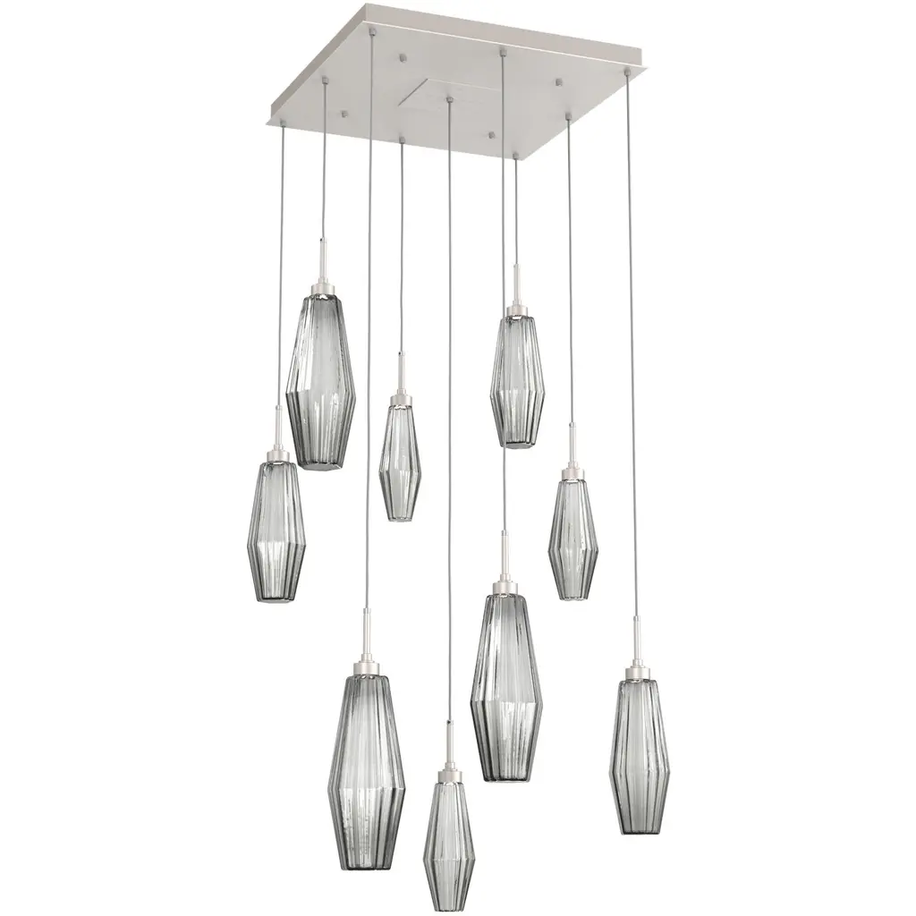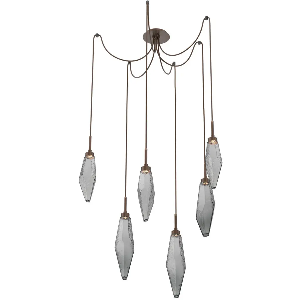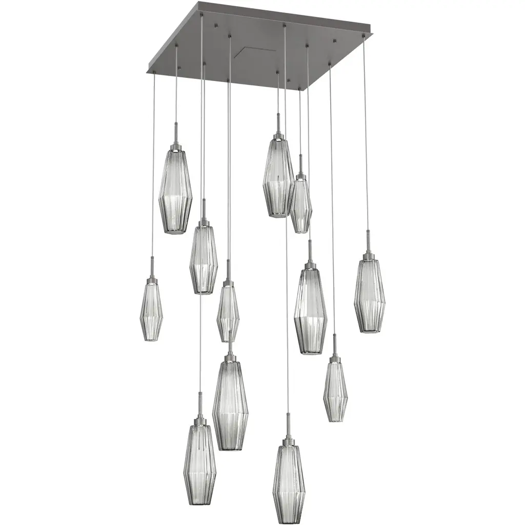 The Hammerton Studio Rock Crystal Square Multi Light LED Pendant is a handcrafted piece that will make any space feel like a mystical cave. Natural looking glass crystals hang from fabric covered cords, each lit with an energy efficient LED. This gives a unique highlight effect to the glass as well as creates an ambient lit atmosphere with an artistic aesthetic.