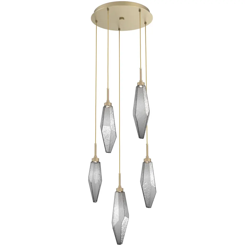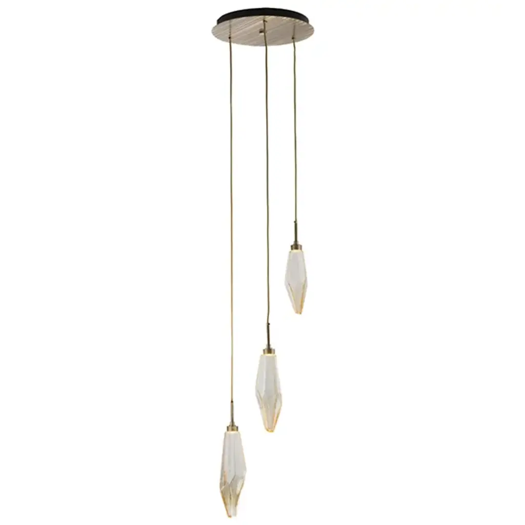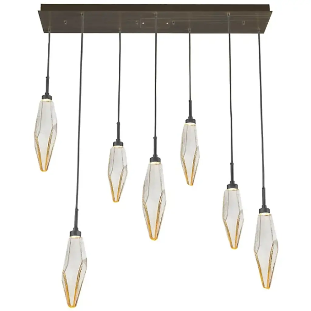 The Hammerton Studio Rock Crystal Square Multi Light LED Pendant is a handcrafted piece that will make any space feel like a mystical cave. Natural looking glass crystals hang from fabric covered cords, each lit with an energy efficient LED. This gives a unique highlight effect to the glass as well as creates an ambient lit atmosphere with an artistic aesthetic.
