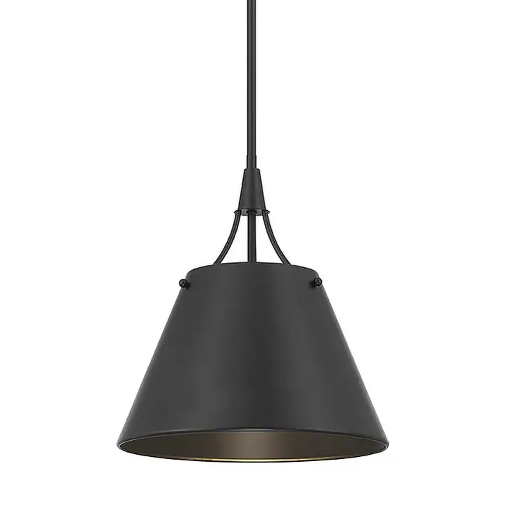 Smart, sleek, solid. The Rockland Pendant from Visual Comfort Studio, formerly known as Sea Gull Lighting, serves the dressed-up or refined space as a handsome luminaire. The pendant’s fine suspension and compact canopy make the piece easy to imagine as part of a series over a table. The modern piece suggests an industrial character with a group of curved bands over the top of the shade. Made from metal, the dome shade gives the light room to breathe and spread out softly. When turned on, an accenting light casts across the band accents while relaxed downlight fans out the generous opening.