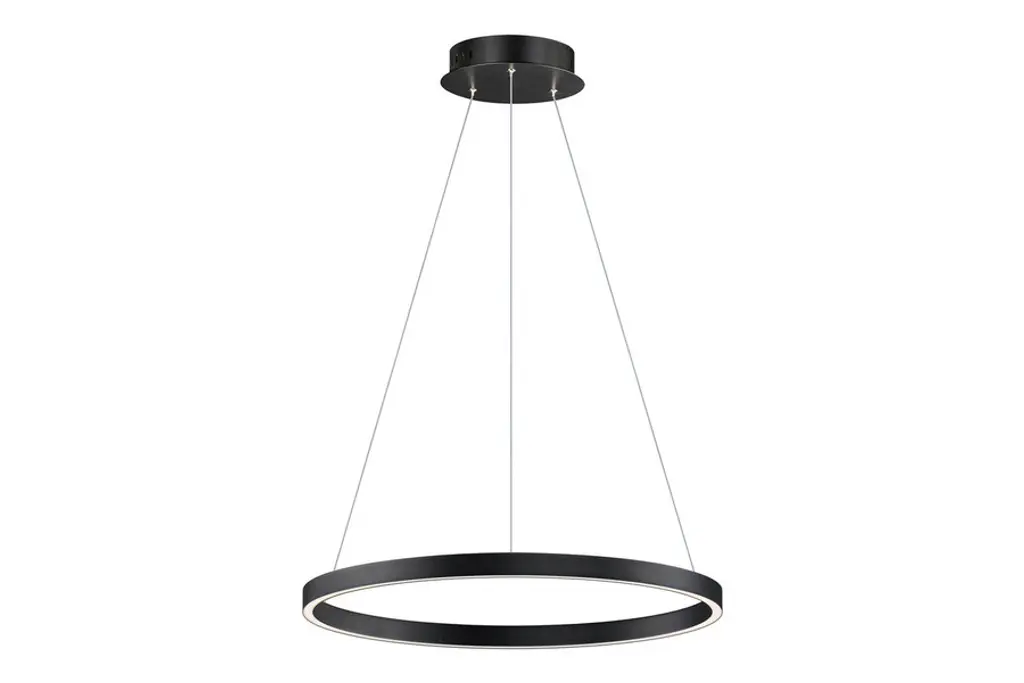 The Roda Collection is characterized by its large, cylindrical, ring-shaped shade. Its inner contour is surrounded by an aluminum ring housing a continuous circle of LEDs, emitting a uniform, filtered light. The warmth of the ribbon is highlighted by the dark ring outlining the perimeter, making these fixtures particularly cozy and lightweight, because despite their large volume, they seem weightless. Features